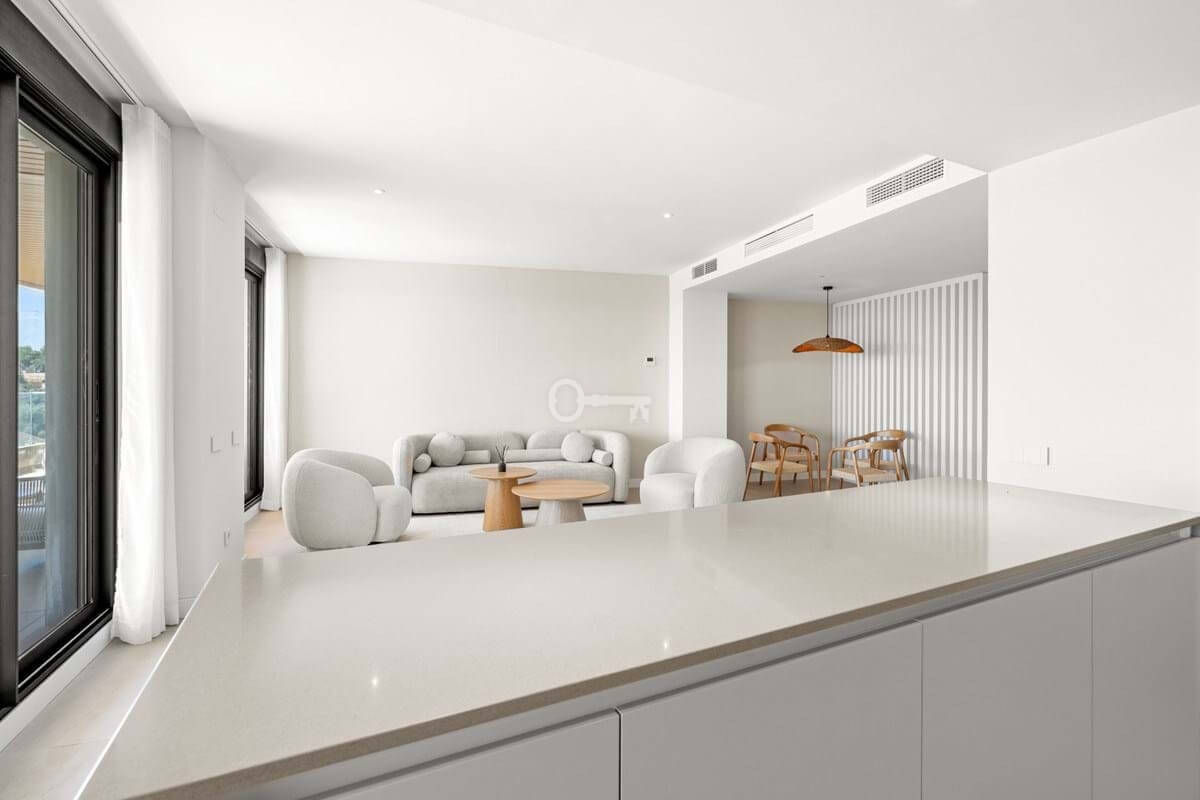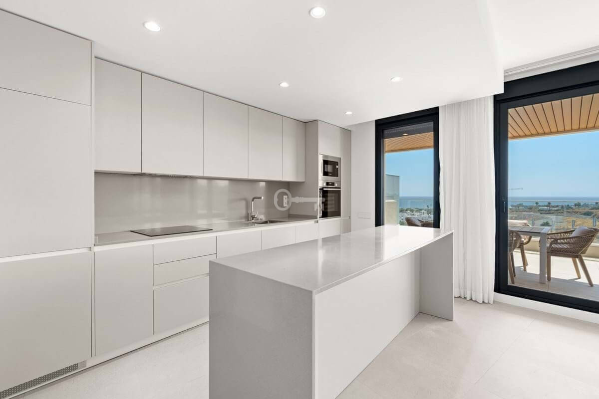 Ideally located close to the sea, golf courses, shops, schools, and local bars, this apartment provides an enviable lifestyle on the Costa del Sol. The covered and private terraces are perfect for enjoying the Mediterranean climate and the stunning vistas that define this modern Estepona residence.