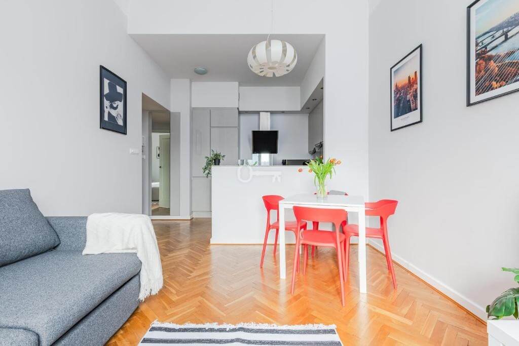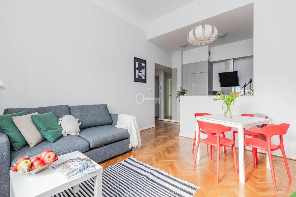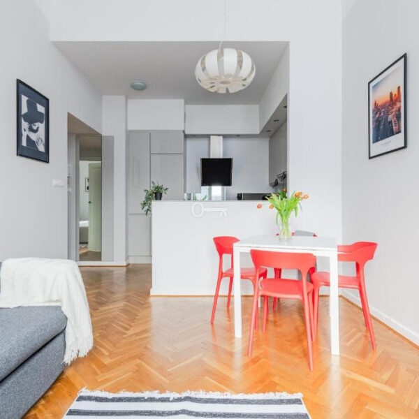 A unique apartment with an area of 34.5 m2, located in an atmospheric tenement house from 1939 at 34 Smolna Street. An ideal proposition for a single person or a couple who appreciate living in the city center, surrounded by beautiful architecture and rich history.