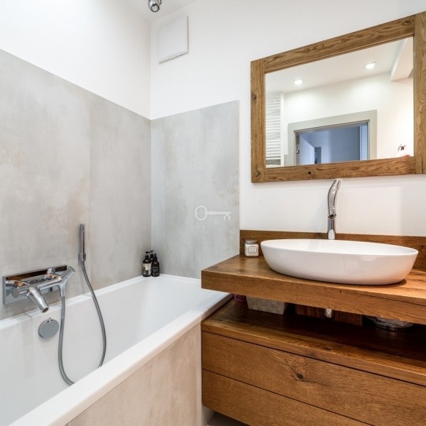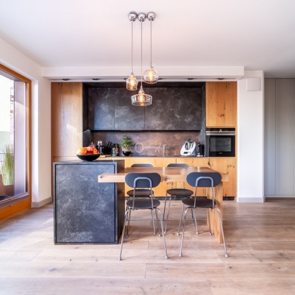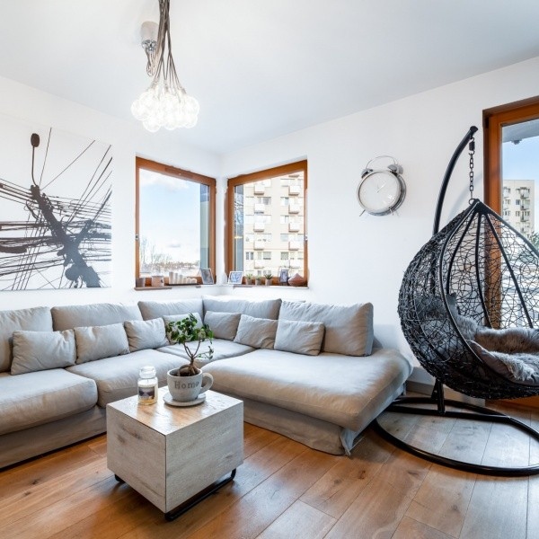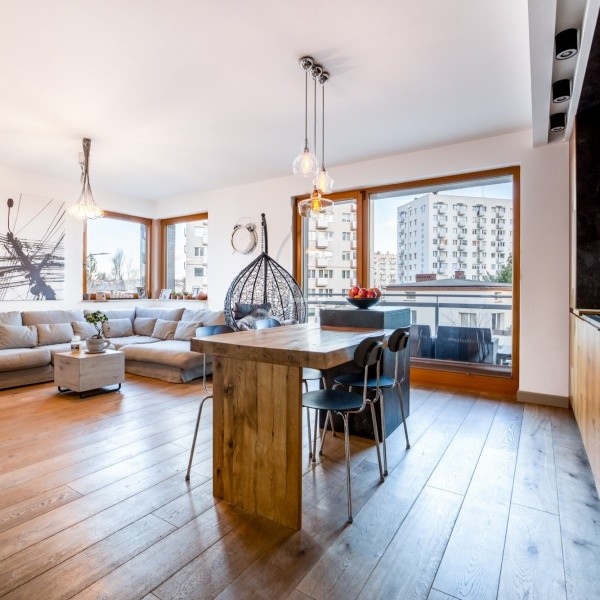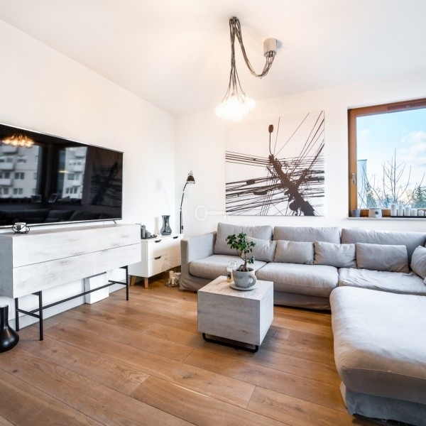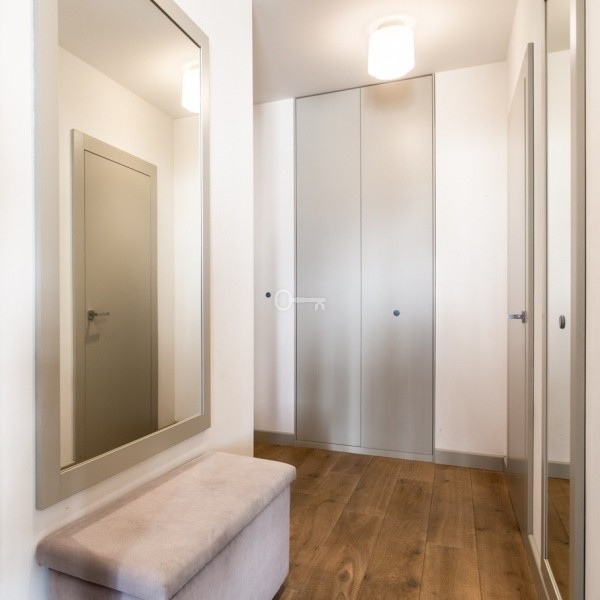 Finished with good quality materials. Equipped with household appliances and RTW. The apartment is dominated by wood, buildings and carpentry on request. Floors – oak (Abaro-Taba). Modular sofa in the living room (Sits-Heaven). 50 inch TV lounge.