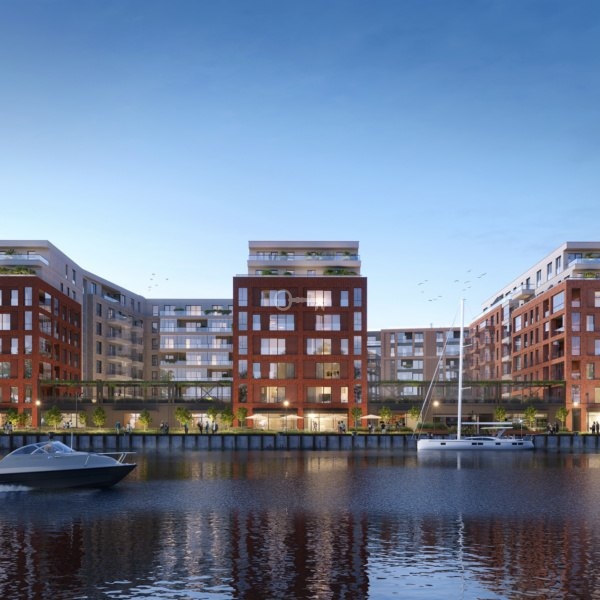 A brand-new residential complex is being developed right on the Motława River, at Stępkarska and Wiosny Ludów Streets – in Młode Miasto (Young City) – one of the most exciting areas of Gdańsk. It’s a modern revitalization of former shipyard grounds, combining industrial heritage with urban lifestyle.