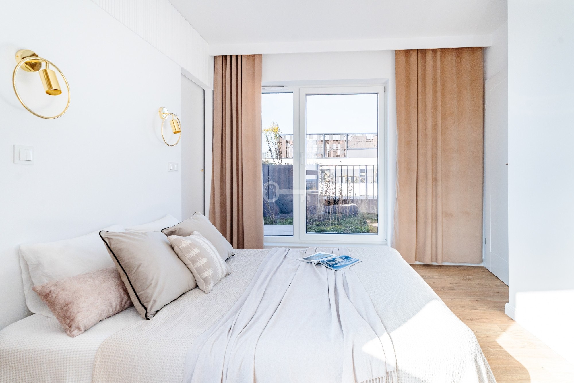 A unique, glamour-style apartment with an area of 45.92 m² and an impressive terrace of 25.56 m², located on the 9th floor of the modern Fiqus Marcelin development by Nickel Development. It is an elegant space that impresses with its light, functionality, and feminine character.