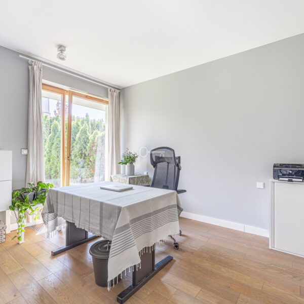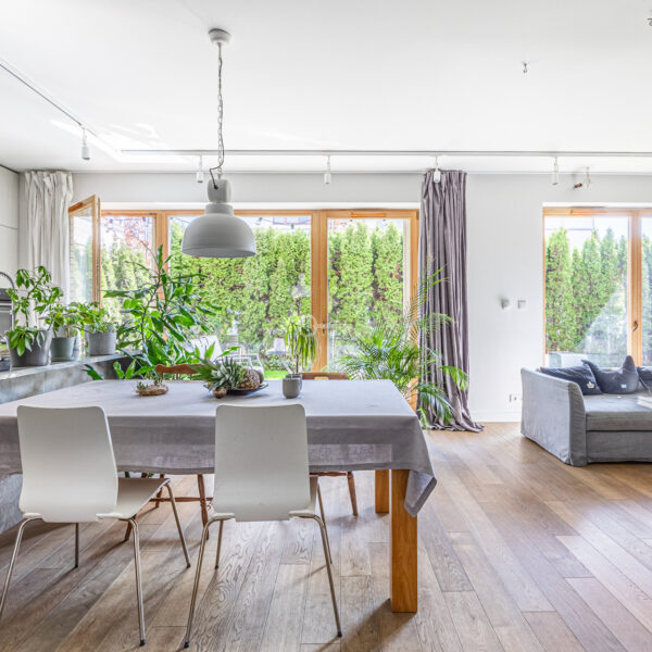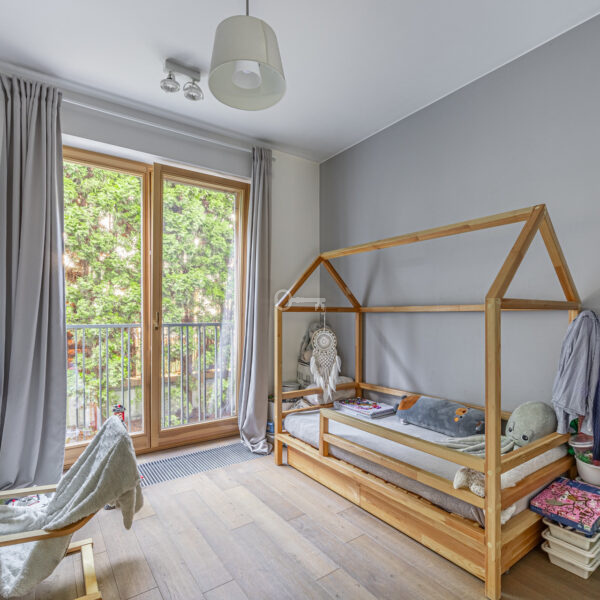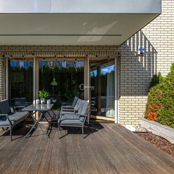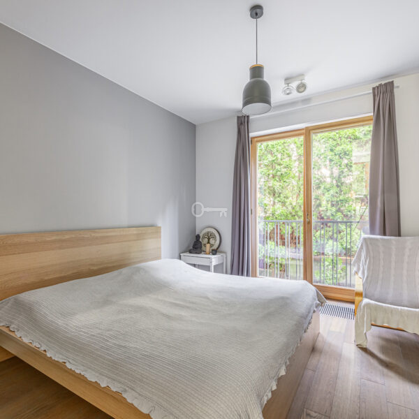 This well-appointed and luminous apartment is located on the first floor of one of the best buildings on Syta Street. Large glazing, making the apartment beautifully lit. The garden, the natural materials used to finish the interior, as well as the functional layout of the rooms are the main assets of this property.
