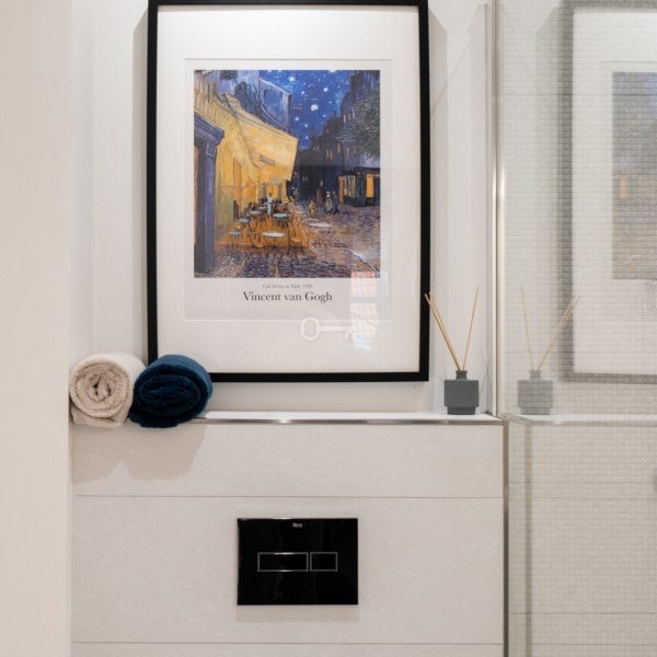The apartment is situated within the layout of two adjacent Tenement Houses, located in an area recognized as a historical monument. They form part of the historical urban fabric of the city of Gdańsk. Szeroka Street was destroyed in 1945 during wartime operations. Historical remnants can be noticed in the distinction of separate gabled façades and the ridge arrangement perpendicular to the street.