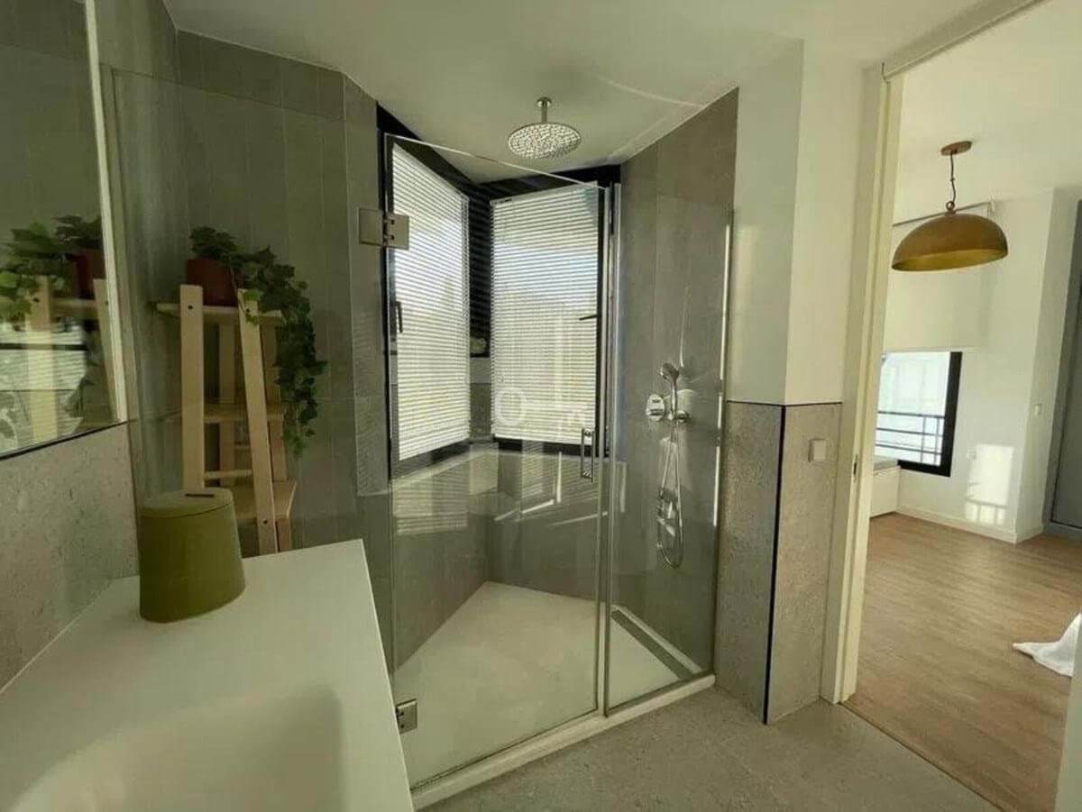 On the upper floor, there are two en-suite bedrooms, both with luxurious finishes and careful design. The master bedroom also has a cozy reading or relaxation area, from which you can enjoy partial sea views.