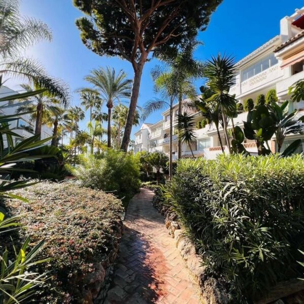 The property has a floor area of 157 m², distributed over two bedrooms and two bathrooms, one of which is en-suite, as well as a separate kitchen and living room. It is a ground floor flat with a garden, ideal for enjoying the Marbella climate, with a large 56 m² terrace that extends the outdoor space and provides a pleasant feeling of privacy.