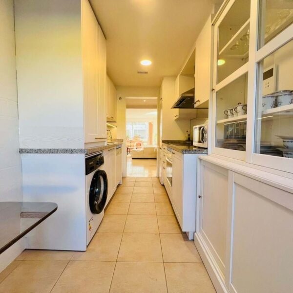 The apartment has a built area of 110 m² and features 2 bedrooms and 2 bathrooms, a renovated kitchen, and a spacious open-plan living and dining area with a west-facing orientation, enjoying the afternoon sun and pleasant views of the pool and gardens. Additionally, it includes a patio of approximately 8 m². The property comes with a designated parking space in the underground garage. Among its notable qualities are marble floors, air conditioning, electric blinds, and double-glazed windows.