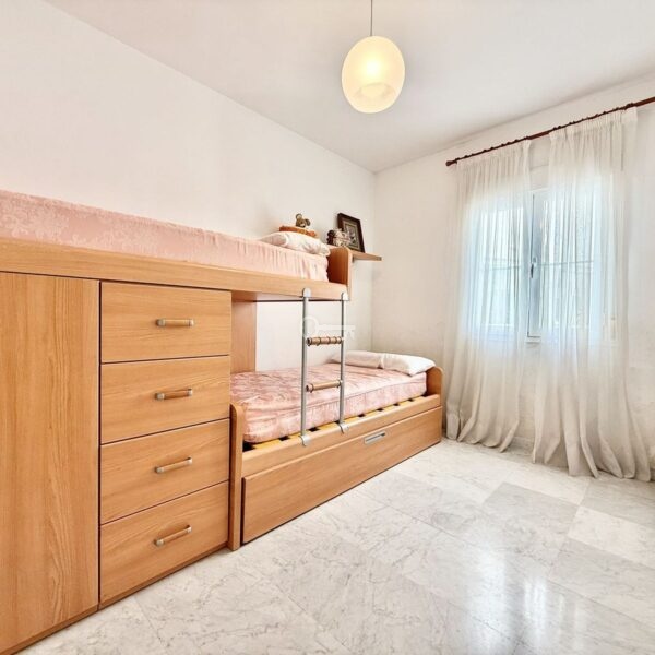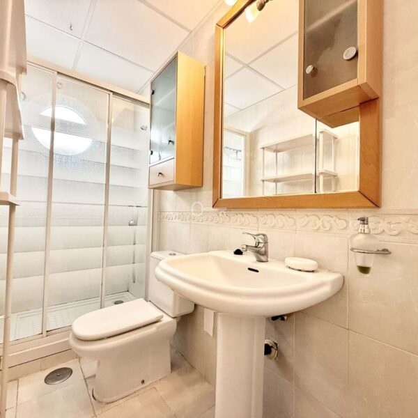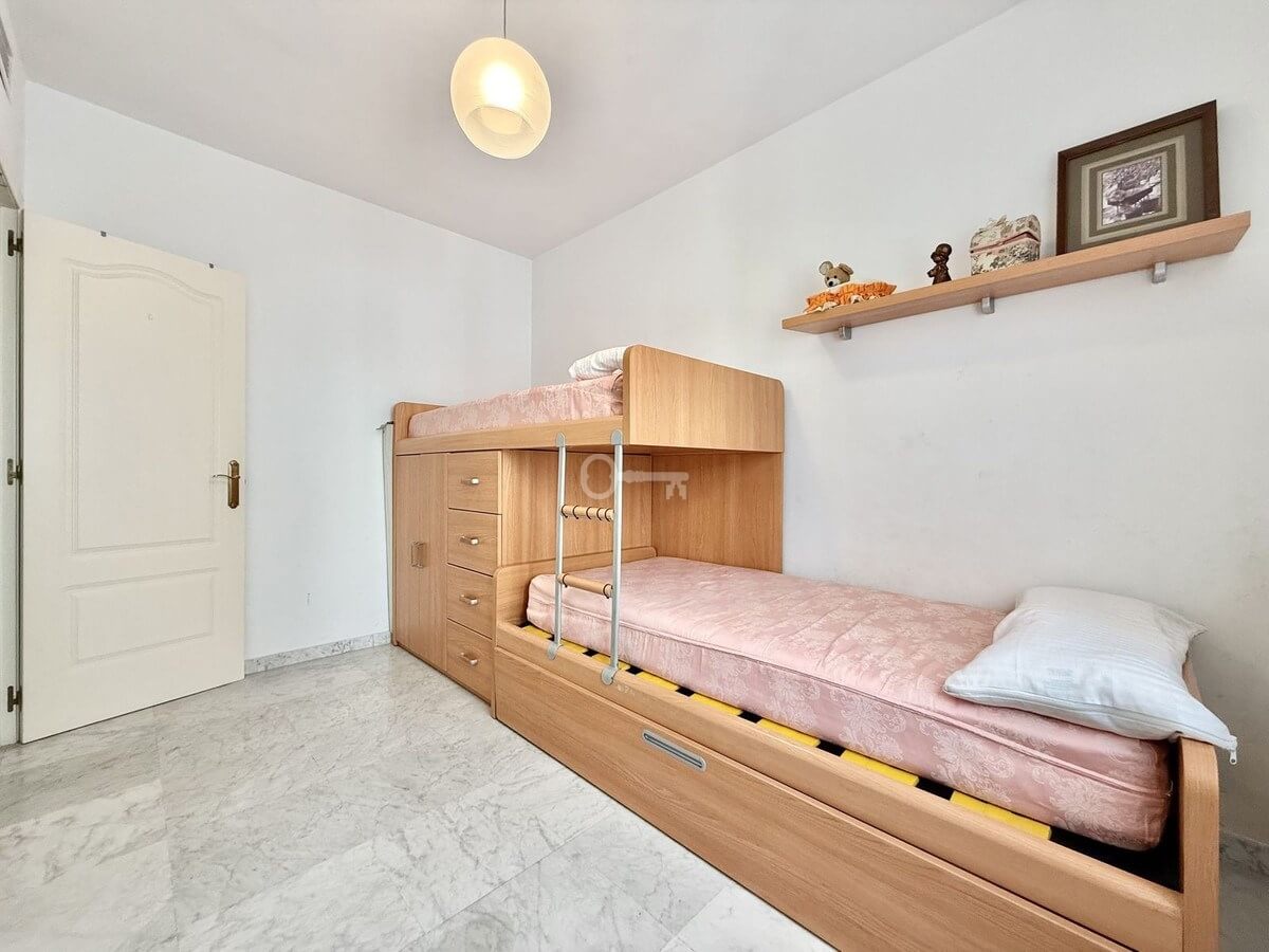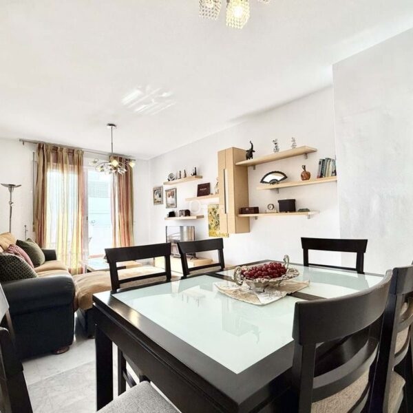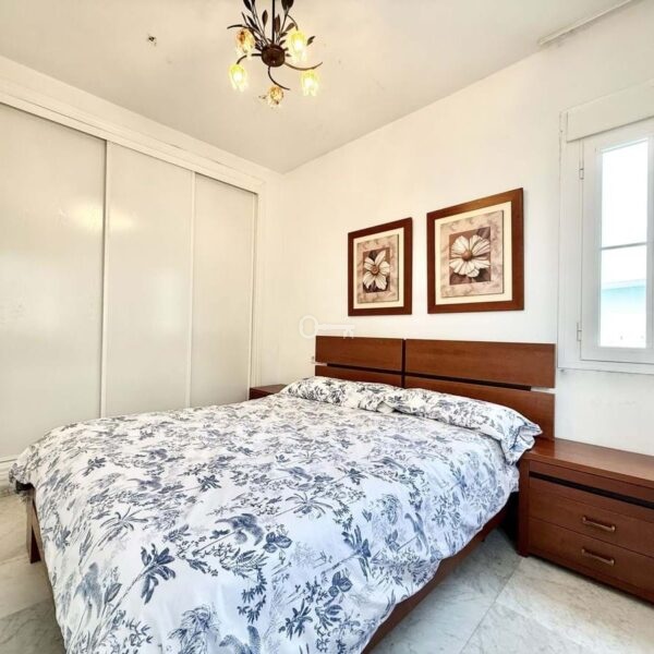 The property features a spacious living and dining area. From the living room, there is direct access to a south-facing terrace overlooking the communal gardens. On this same level, there are two generous bedrooms with built-in wardrobes and two full bathrooms, one of which is en-suite in the master bedroom. The property also includes a fully equipped kitchen with a separate utility room.