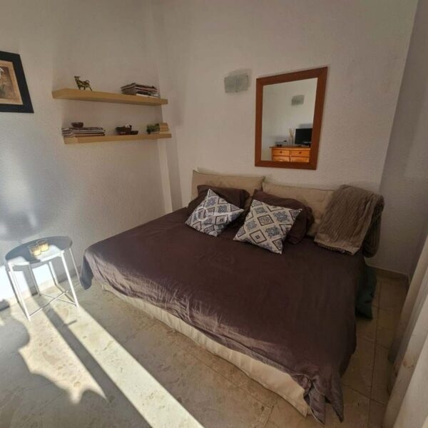 The bedroom is spacious, and there is direct access from the living room to the terrace.