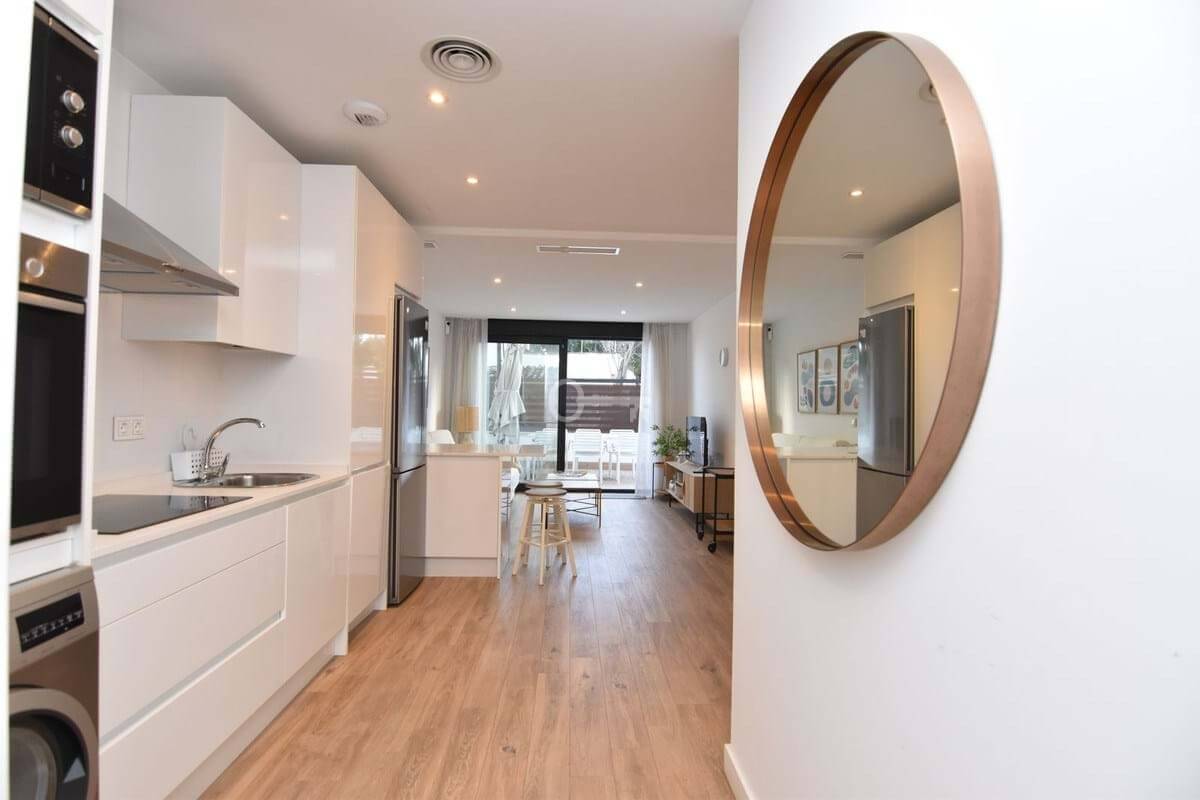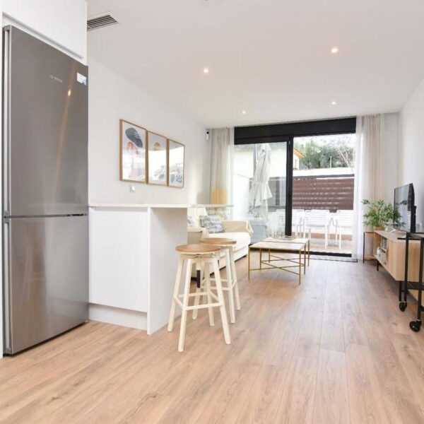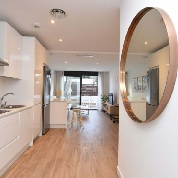 The property, built in 2021, has 90 m2 of interior space distributed over two bedrooms, a full bathroom + a toilet, with a modern and functional design. Located on the ground floor and on the corner, it is part of a contemporary building with few neighbours, well maintained and cared for with solar panels and a communal solarium terrace.