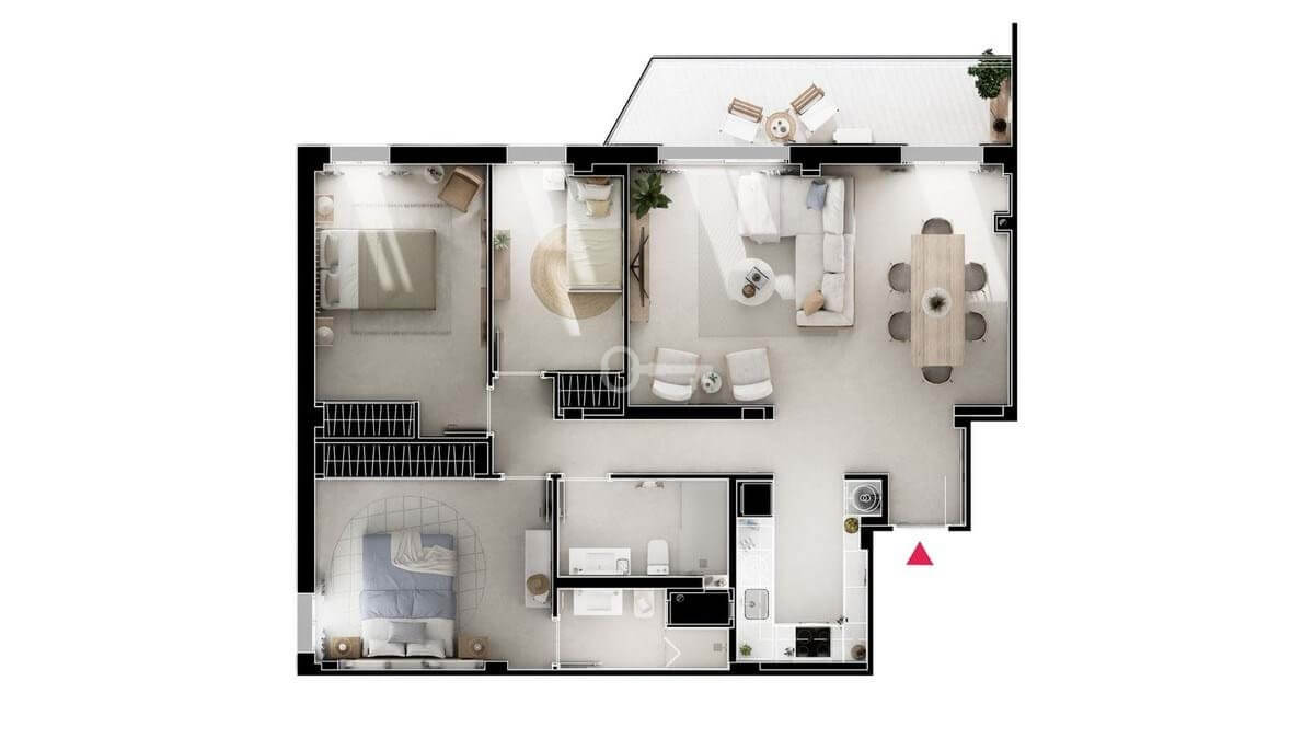 3 Bedrooms, 2 Bathrooms, Built 79 m², Terrace 4 m².