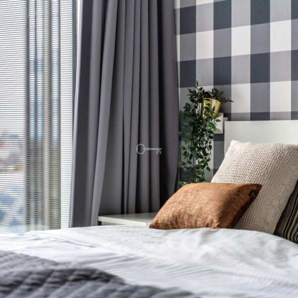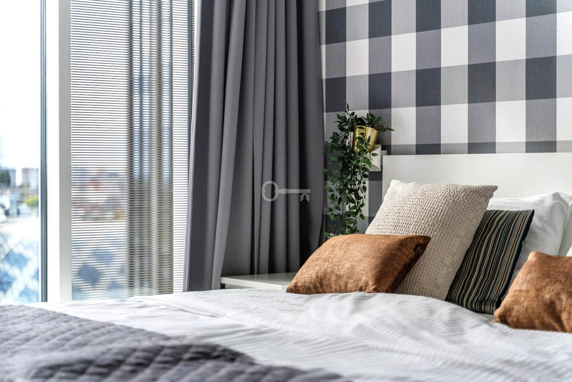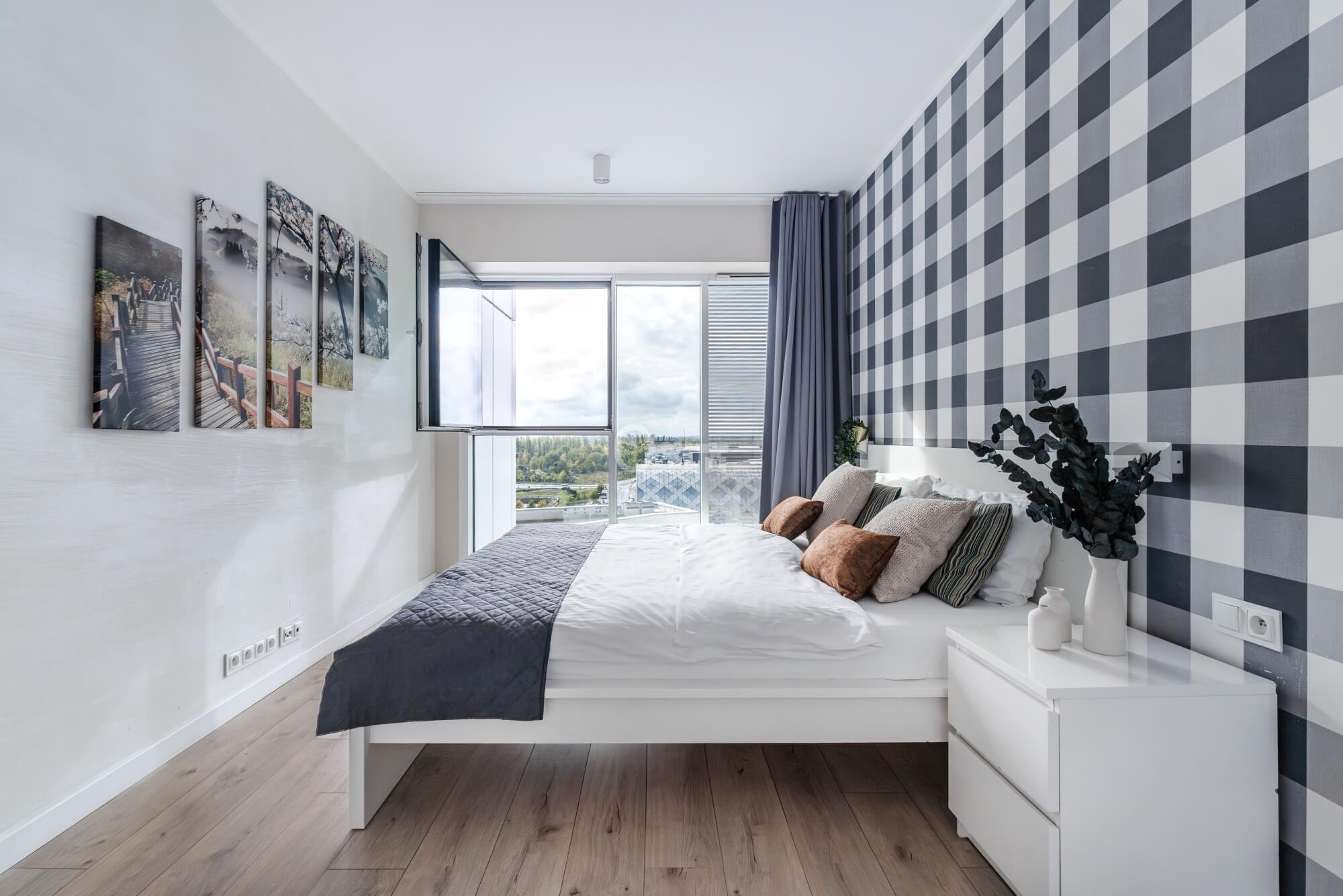 • bedroom with a large window,