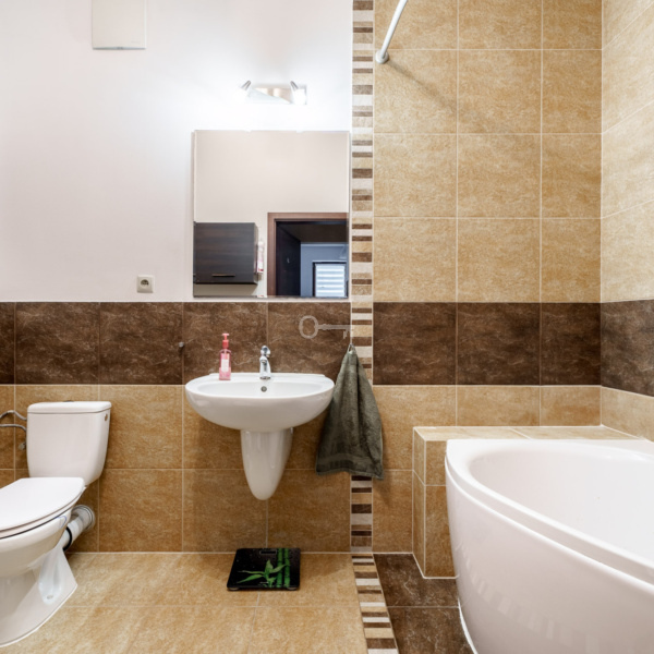 * bathroom with bathtub,