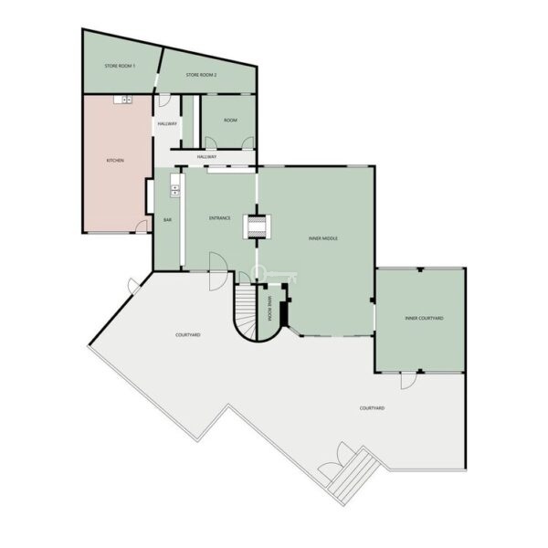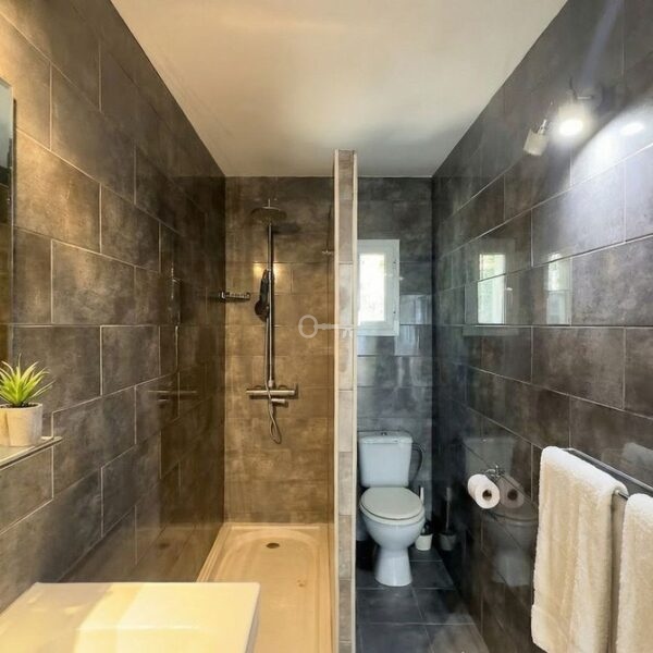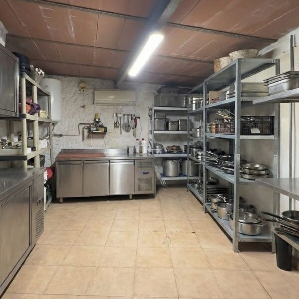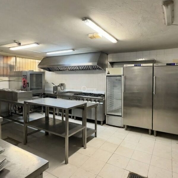 The restaurant is currently not operating but is offered fully furnished and equipped, allowing a new hospitality concept to begin without major renovations. Designed in a charming English style, the space offers 35 indoor seats and more than 50 seats across spacious terraces. Its warm atmosphere, inviting corners, and open fireplace create the ideal setting for a restaurant, bistro, wine bar, or other hospitality venture. The large industrial kitchen is fully equipped and efficiently arranged with separate preparation, plating, dishwashing, and storage areas. With 214 m² built and 164 m² usable space, an open layout, and two restrooms, the property offers excellent operational potential.