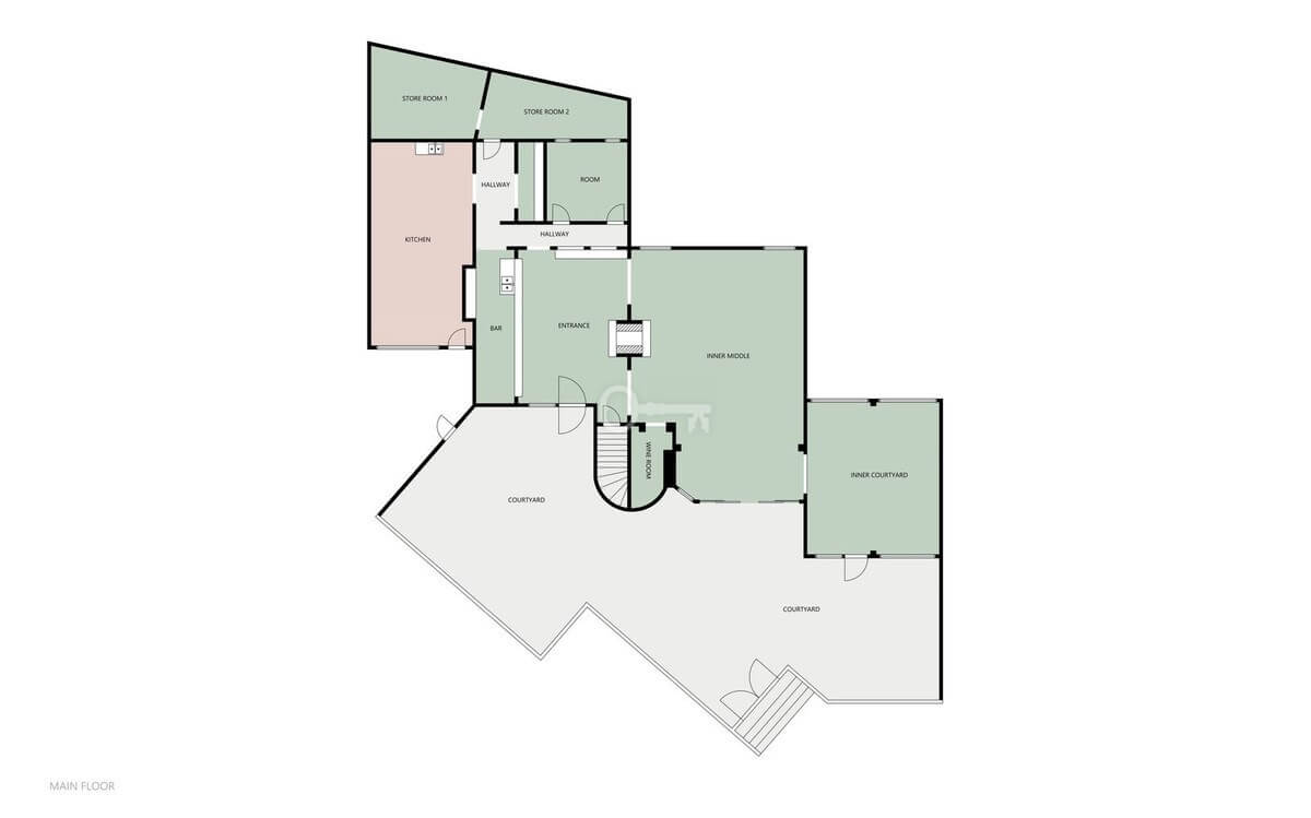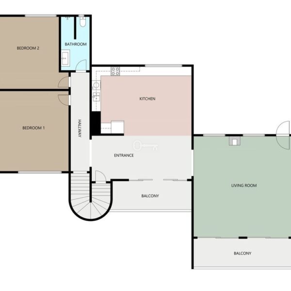 Above the restaurant is a bright two-bedroom apartment, suitable for private use, staff accommodation, or rental. It features a bathroom, fully equipped kitchen, two balconies, a private entrance, and direct internal access to the restaurant for flexibility.