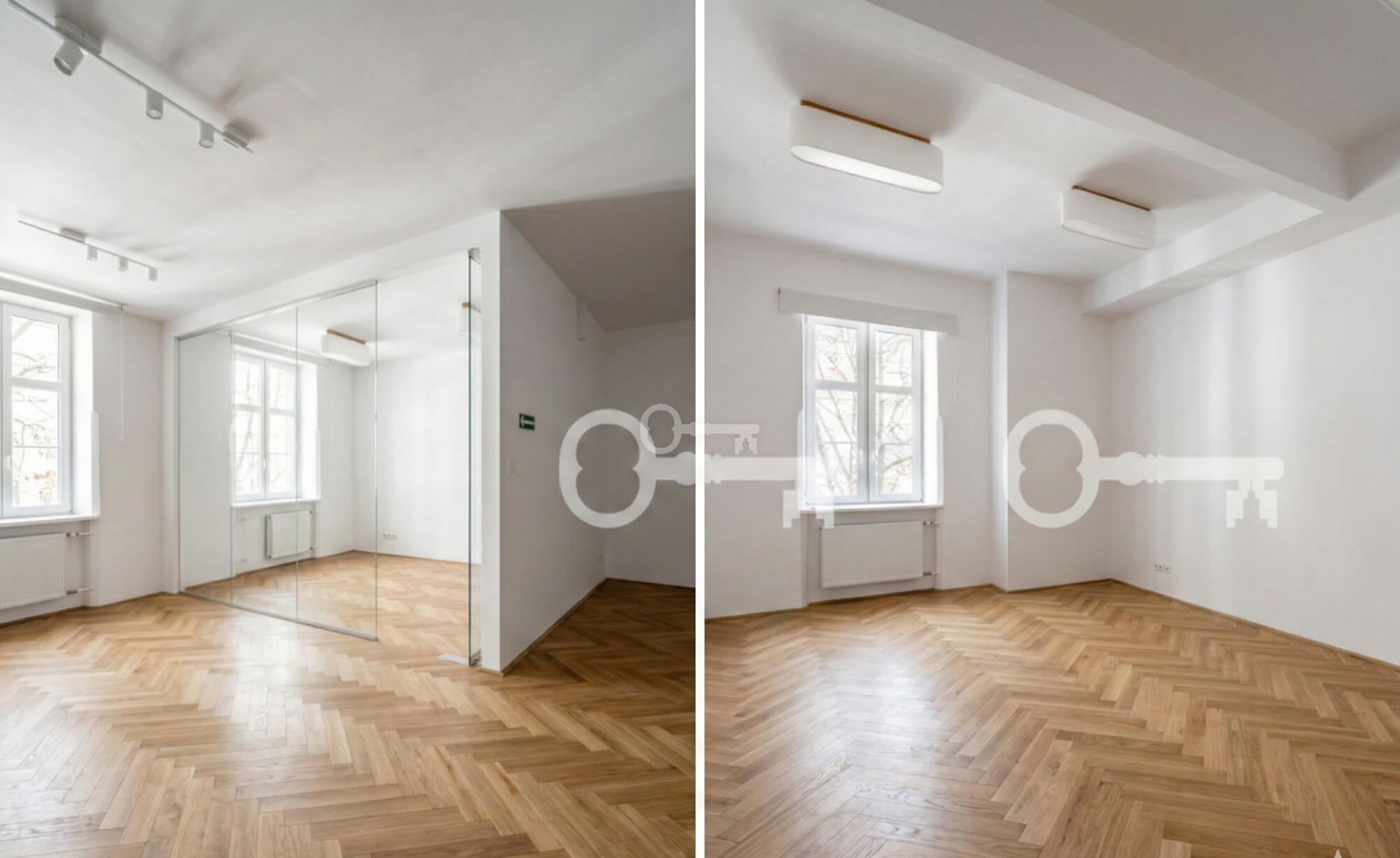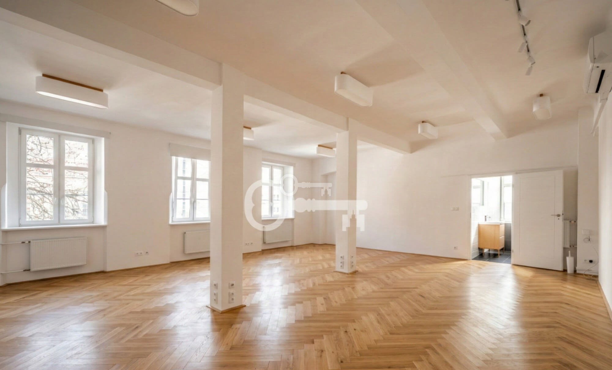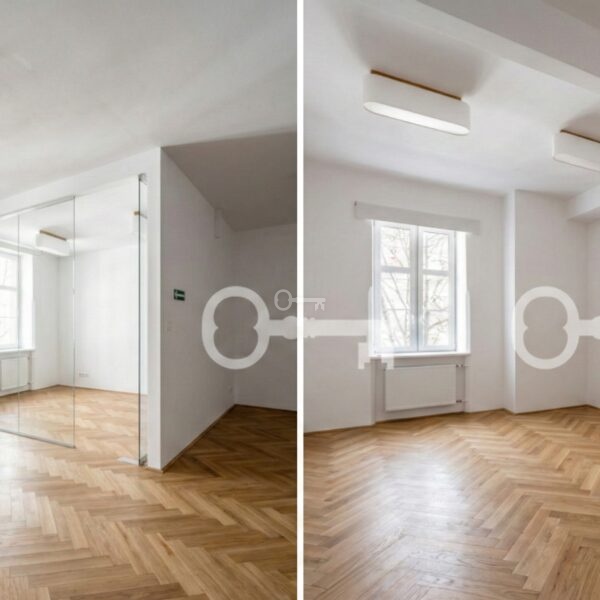 The premises have been finished to a high standard, with air conditioning, a completely new kitchenette, and lighting adapted to the needs of office work.