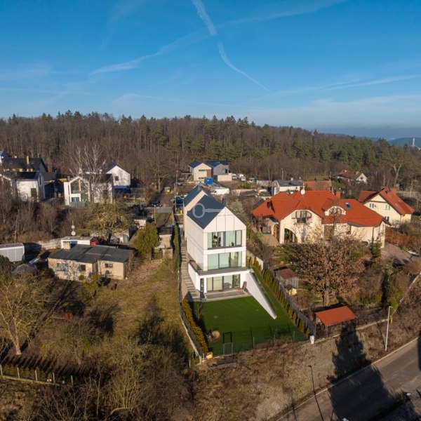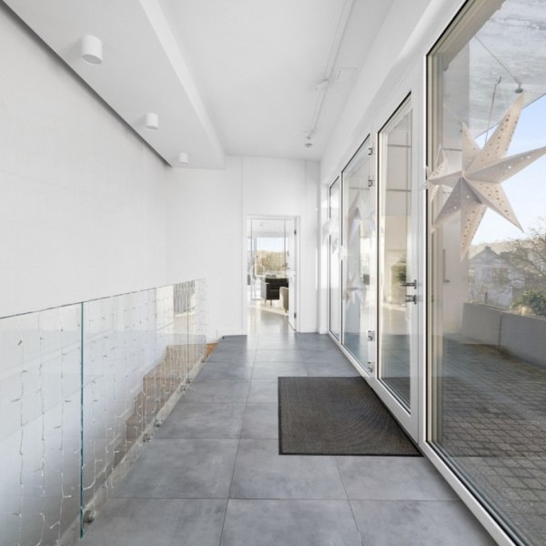 The façade is finished with HPL Trespa Meteon panels in white and natural wood, as well as architectural concrete, giving the property a stylish and timeless appearance. The structure is built on solid reinforced concrete foundations, with walls insulated with mineral wool for excellent thermal and acoustic performance. The wooden roof structure is covered with premium Creaton “Nuance” graphite ceramic tiles, featuring a concealed Galeco gutter system and heated downpipes.