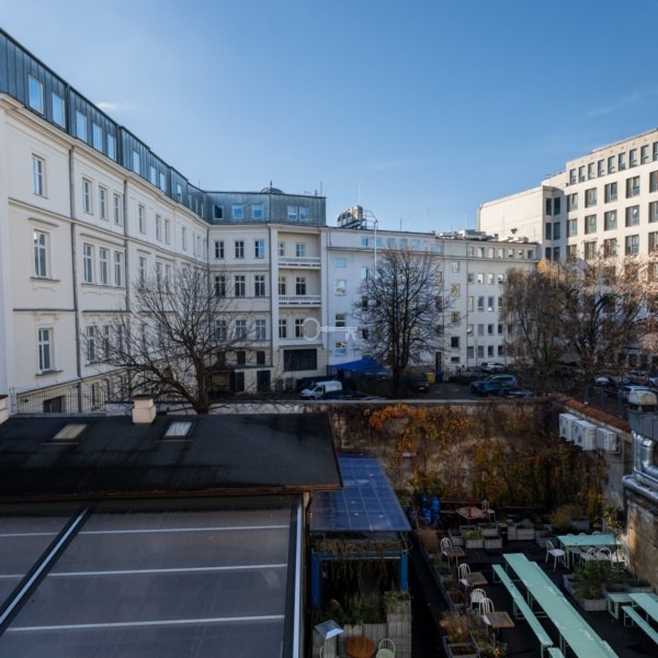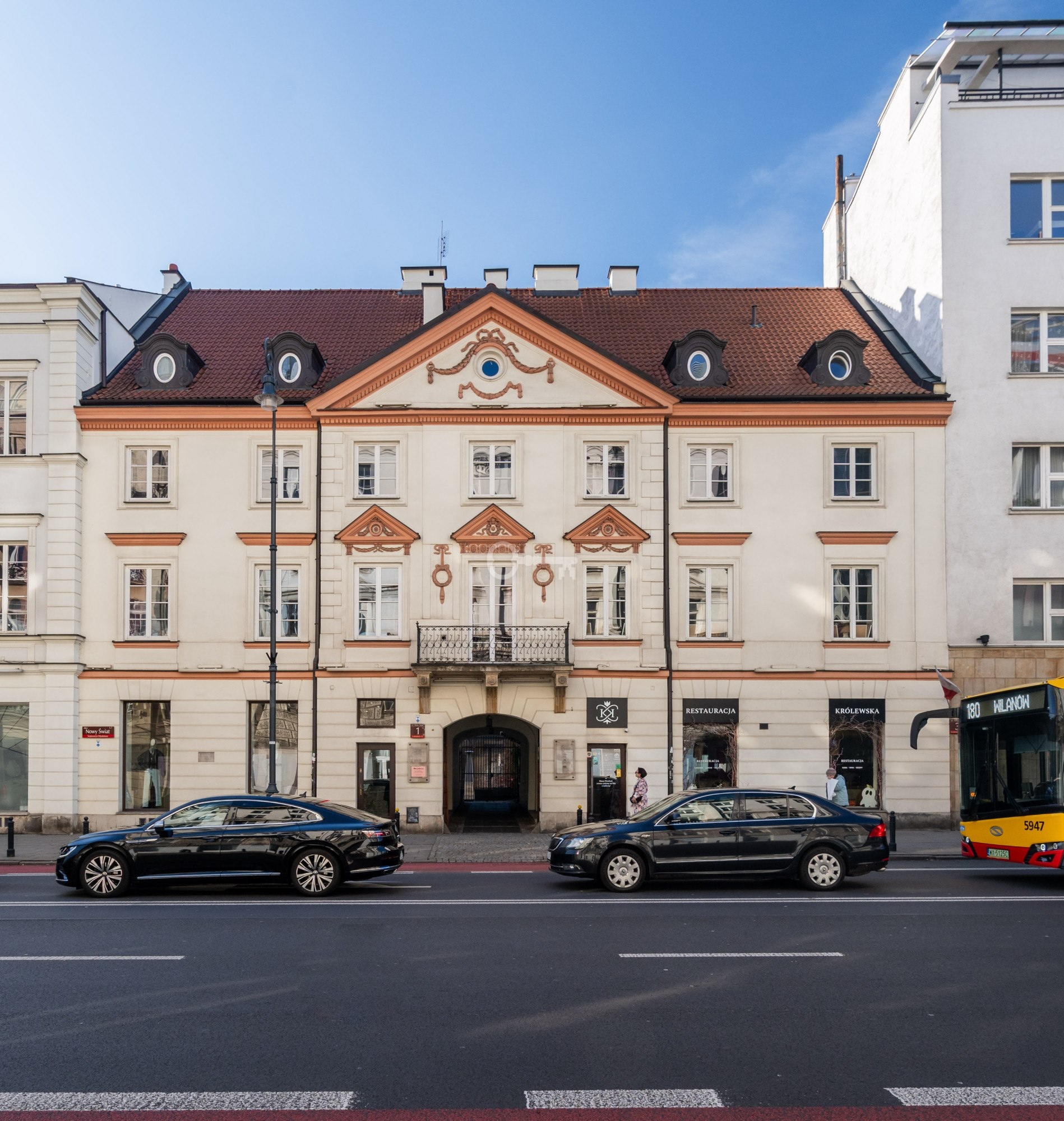 * windows overlooking Nowy Świat Street and the inner courtyard.