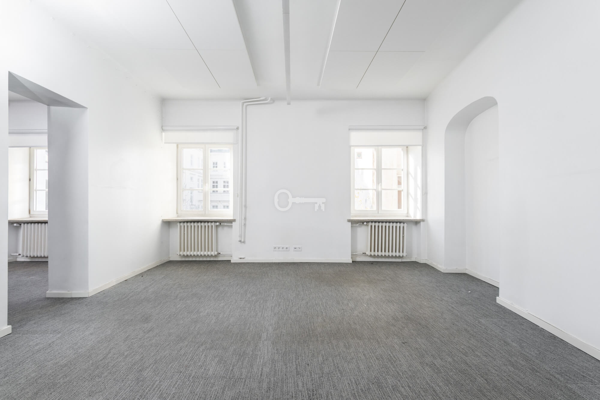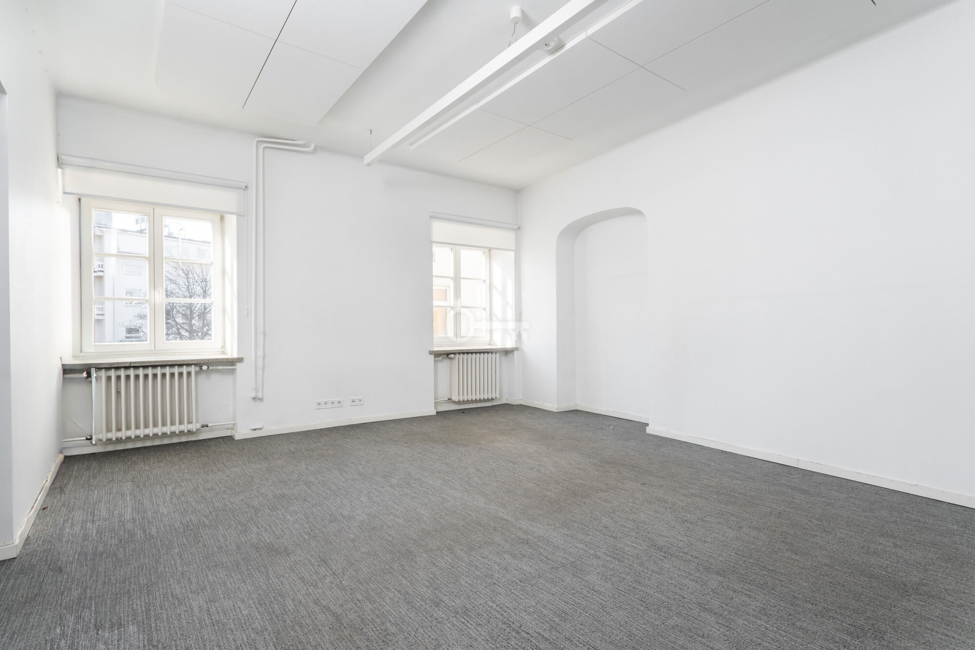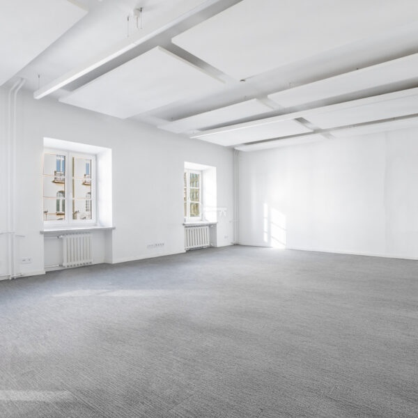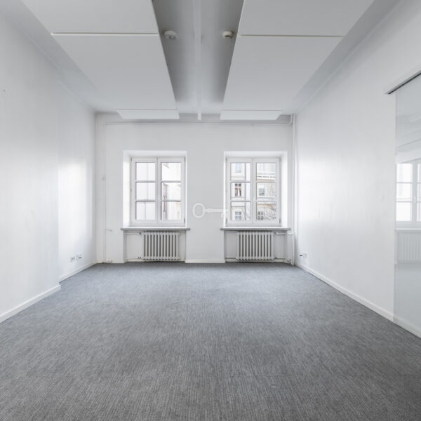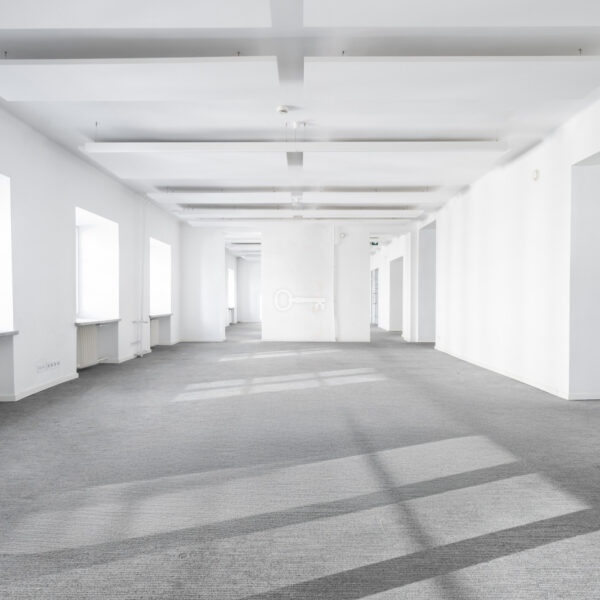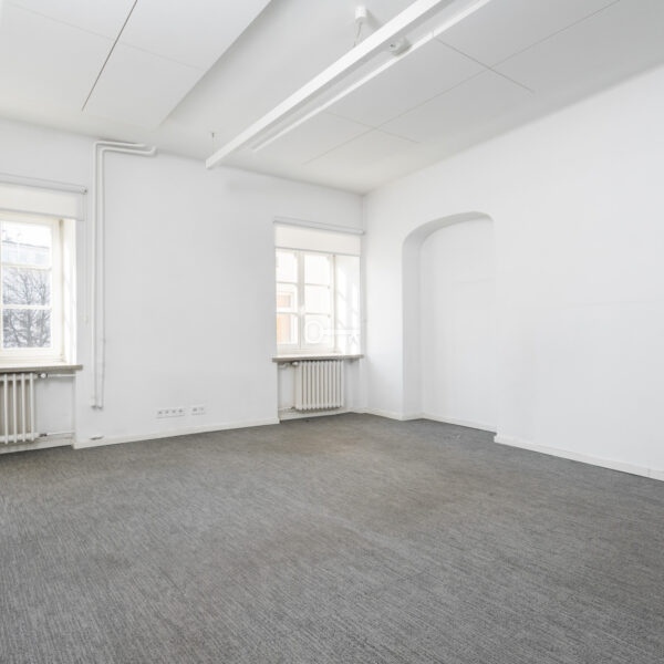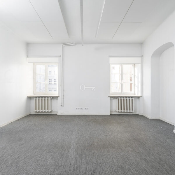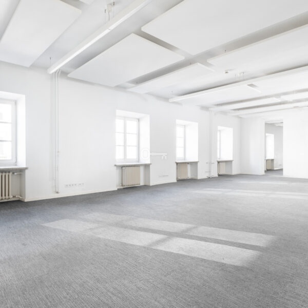 The premises are to be adapted by the tenant, offering the opportunity to create a unique space. Large windows provide excellent lighting. Representative staircase. High standard building.