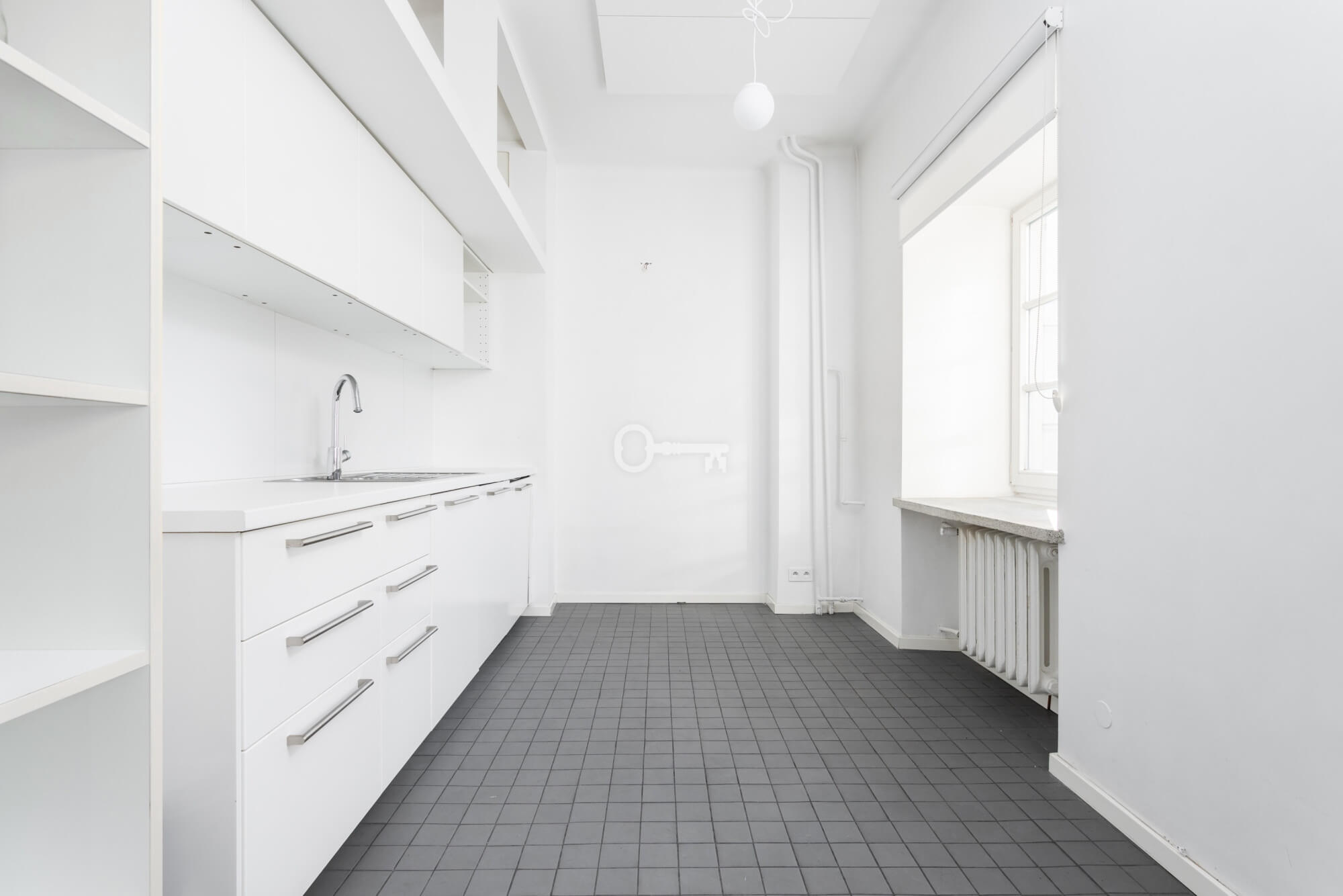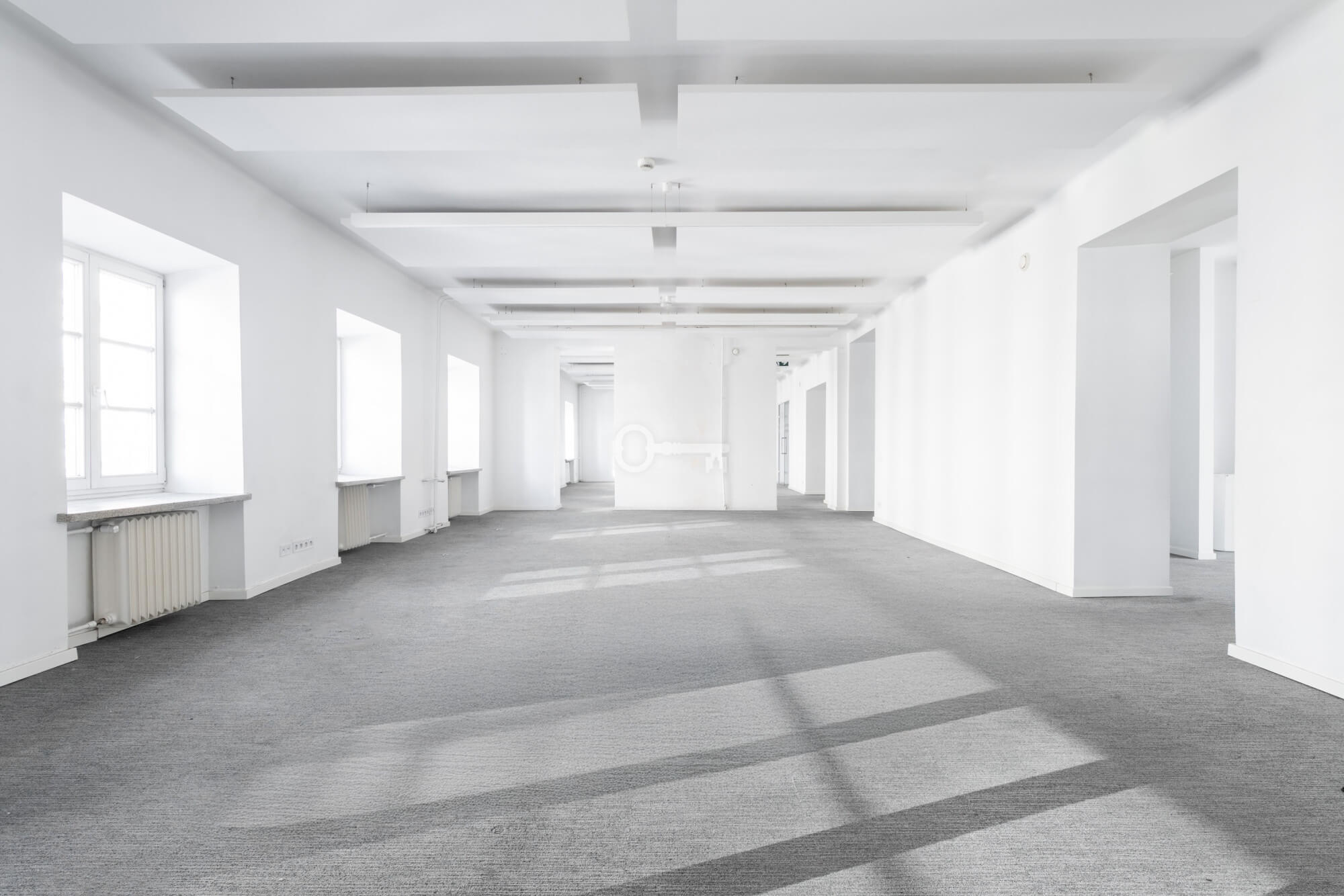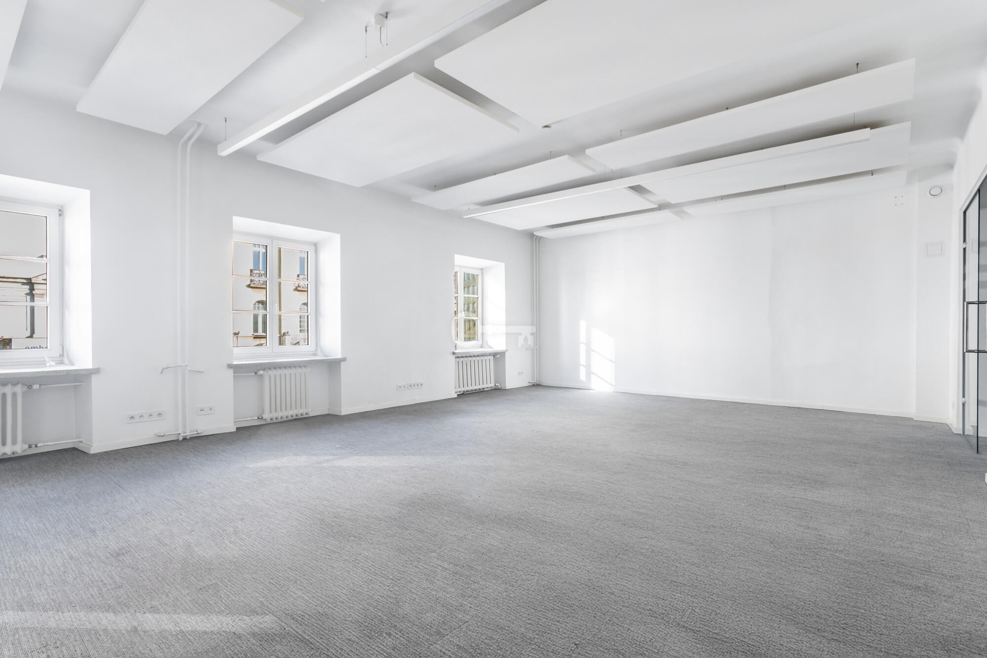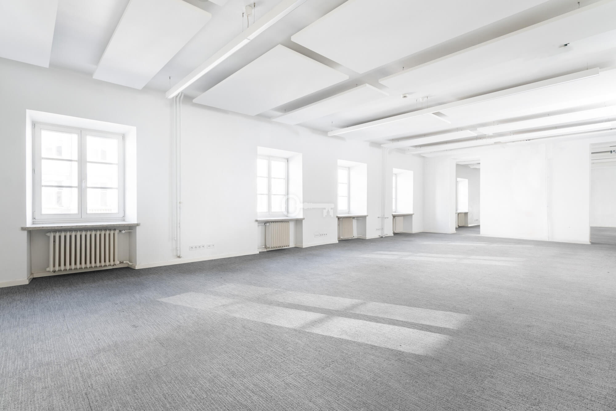 The premises are to be adapted by the tenant, offering the opportunity to create a unique space. Large windows provide excellent lighting. Representative staircase. High standard building.