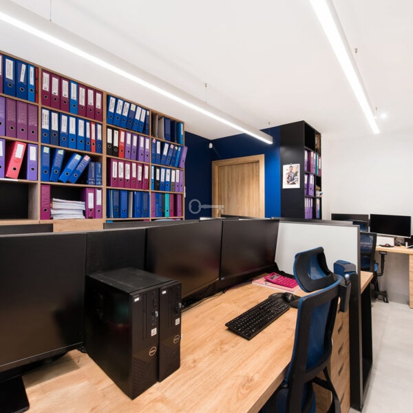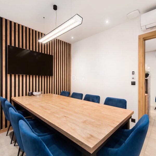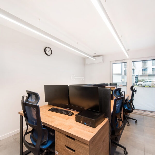 The premises have been divided into ergonomic zones, allowing for comfortable functioning of up to 14 people, which makes it an ideal product for companies, law firms, consulting or IT offices.