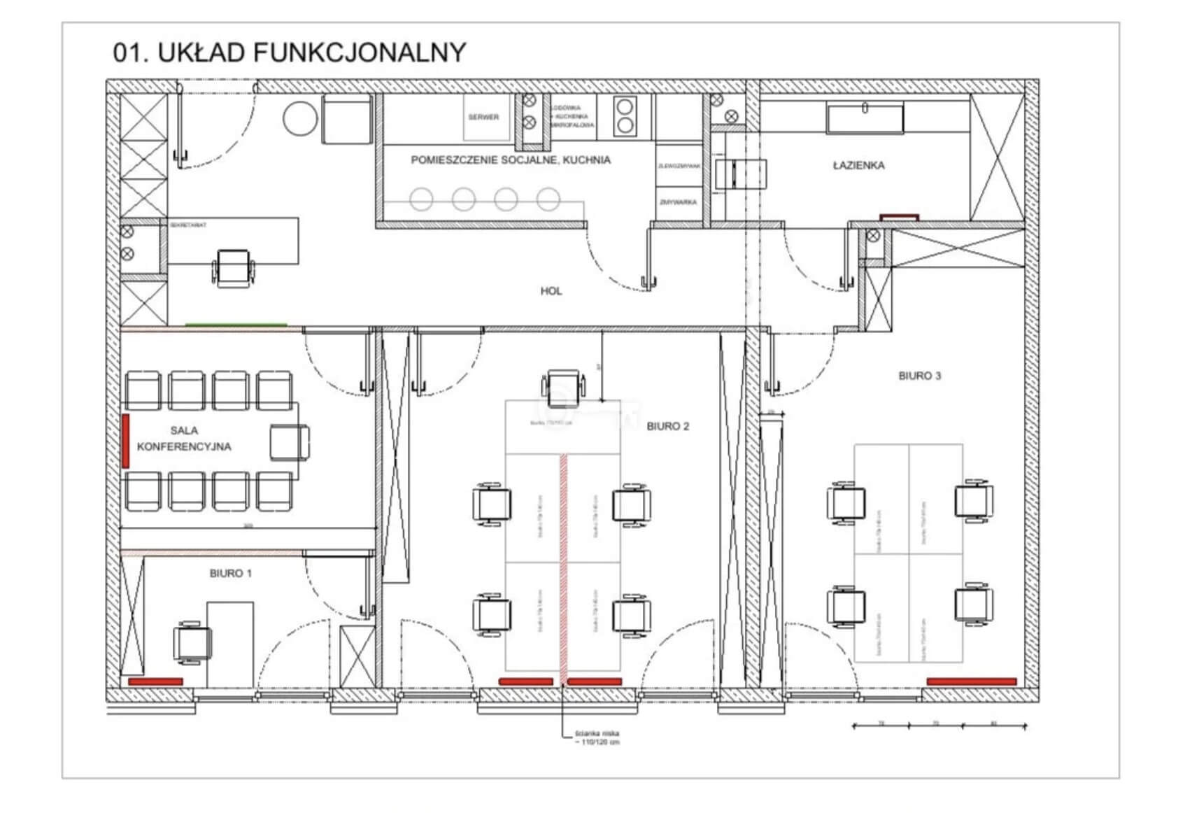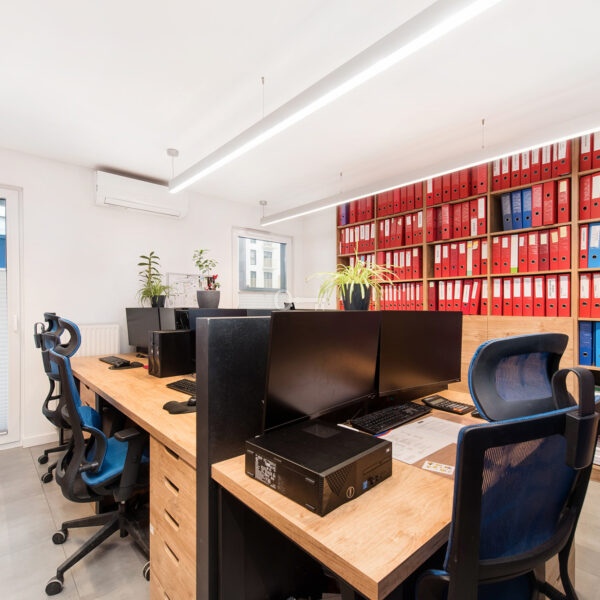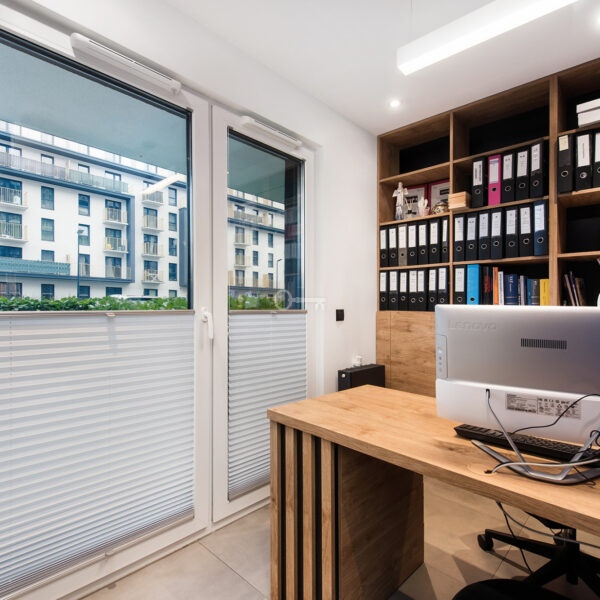 A representative office space with an area of 86 m² for rent, located on the ground floor of a modern building from 2021, in the immediate vicinity of the Bonarka Shopping Center – one of the most important business and communication points in Krakow.