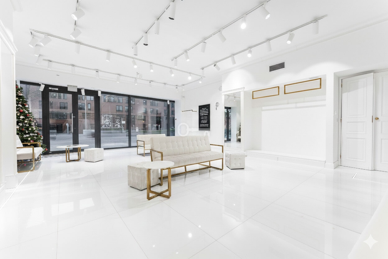 The space can be quickly adapted to office, retail, service or restaurant. The flexible interior layout allows for any arrangement.