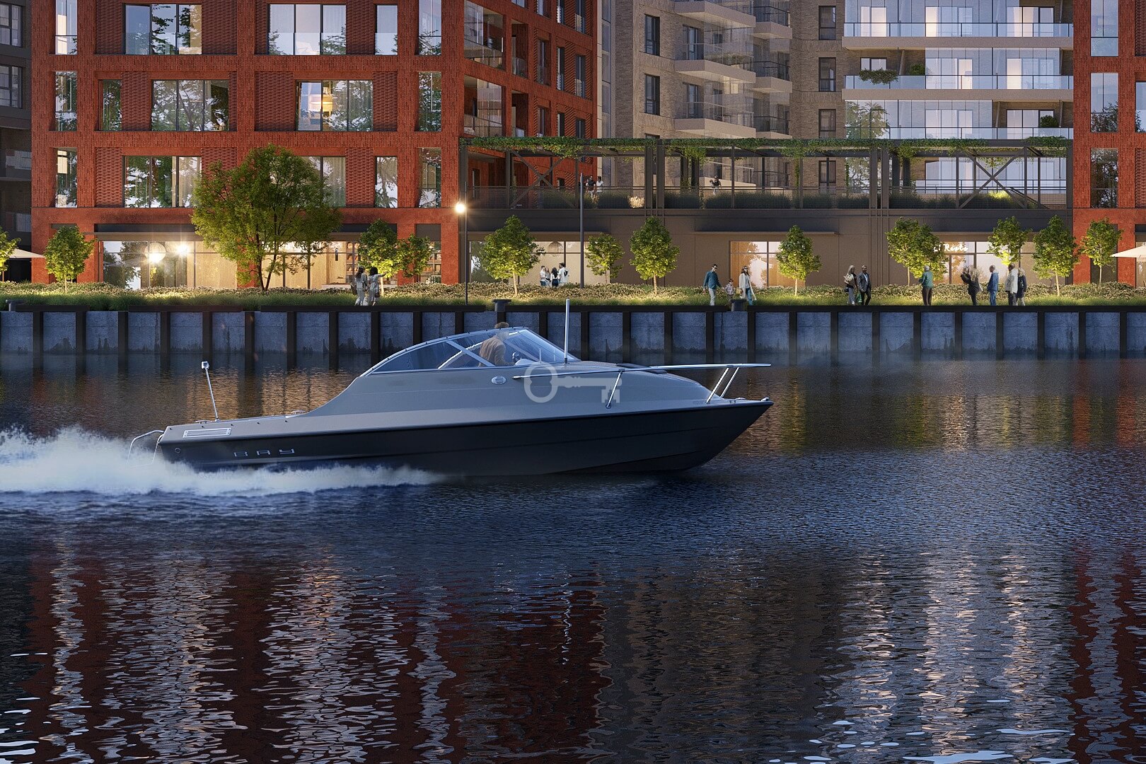 Along the river, between the buildings and the waterfront, an elegant pedestrian and cycling boulevard is planned, enriched with thoughtfully designed greenery and artistic elements highlighting the unique character of this location. The ground floors will feature commercial and gastronomic premises – restaurants and cafés – bringing vibrancy and energy to the area.