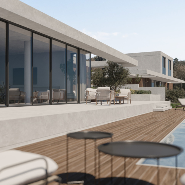 The villas stand out with their minimalist, contemporary design, the use of natural materials, and a thoughtful alignment with the surrounding landscape. Stone façades, landscaped roofs, and soft architectural lines create a sophisticated and timeless aesthetic.