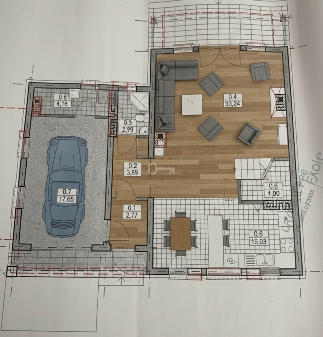 The house was built in 2014 from concrete blocks and insulated with polystyrene foam (15 cm).