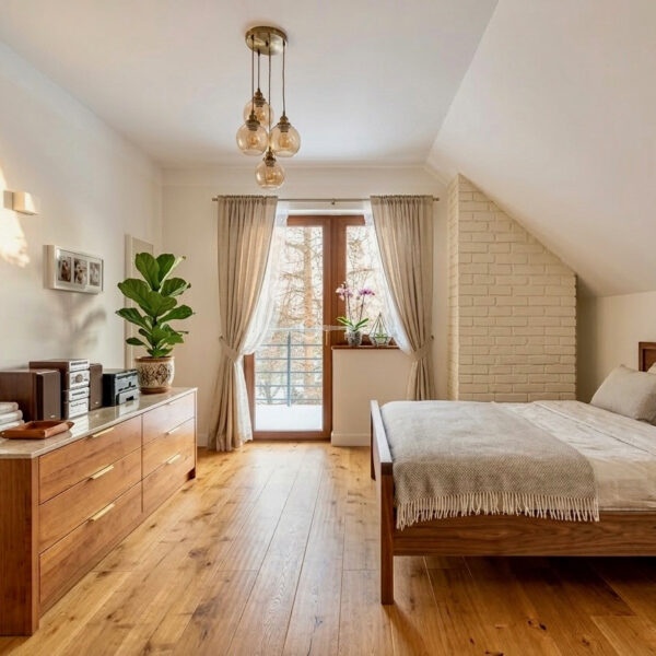 High ceilings (260 cm). Pol-Skone wooden interior doors, oak exterior security doors. Automatic garage and fence gate, intercom.