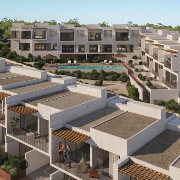 Casas do Sal embraces a housing concept that values the regions authentic architecture while adapting it to contemporary demands. The duplex V2 homes feature spacious and well-distributed interiors, ensuring a seamless connection between indoor and outdoor living. The residences have a gross private area ranging from 126m² to 128m², private terraces, gardens, and optional internal courtyards that can be transformed into additional leisure areas. Designed to maximize natural light, the homes feature large windows and strategically positioned terraces. The design prioritizes natural materials, creating a warm and sophisticated atmosphere. Highlights include open-plan kitchens, living rooms with terraces, comfortable bedrooms, and elegant bathrooms. Each unit comes with one or two private parking spaces, ensuring convenience for residents.