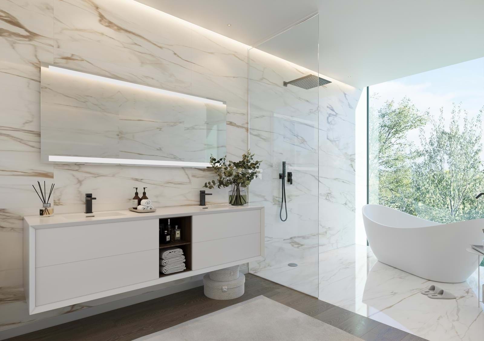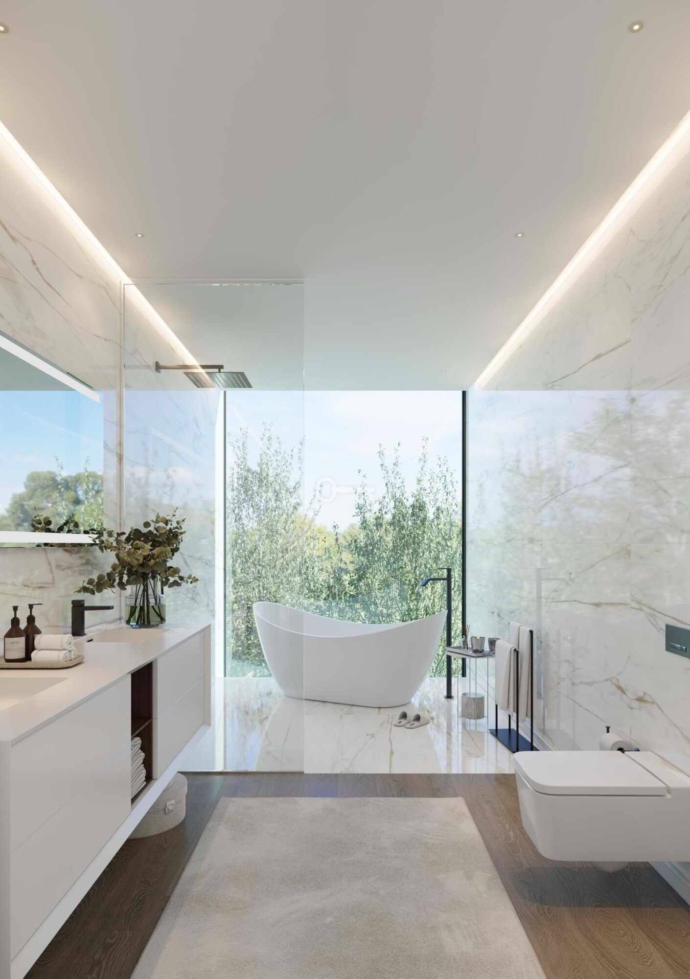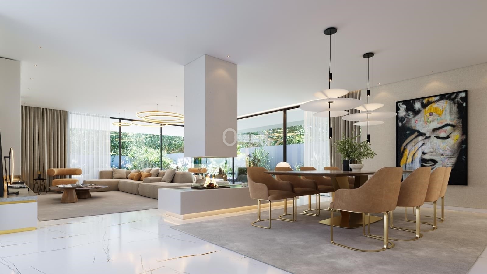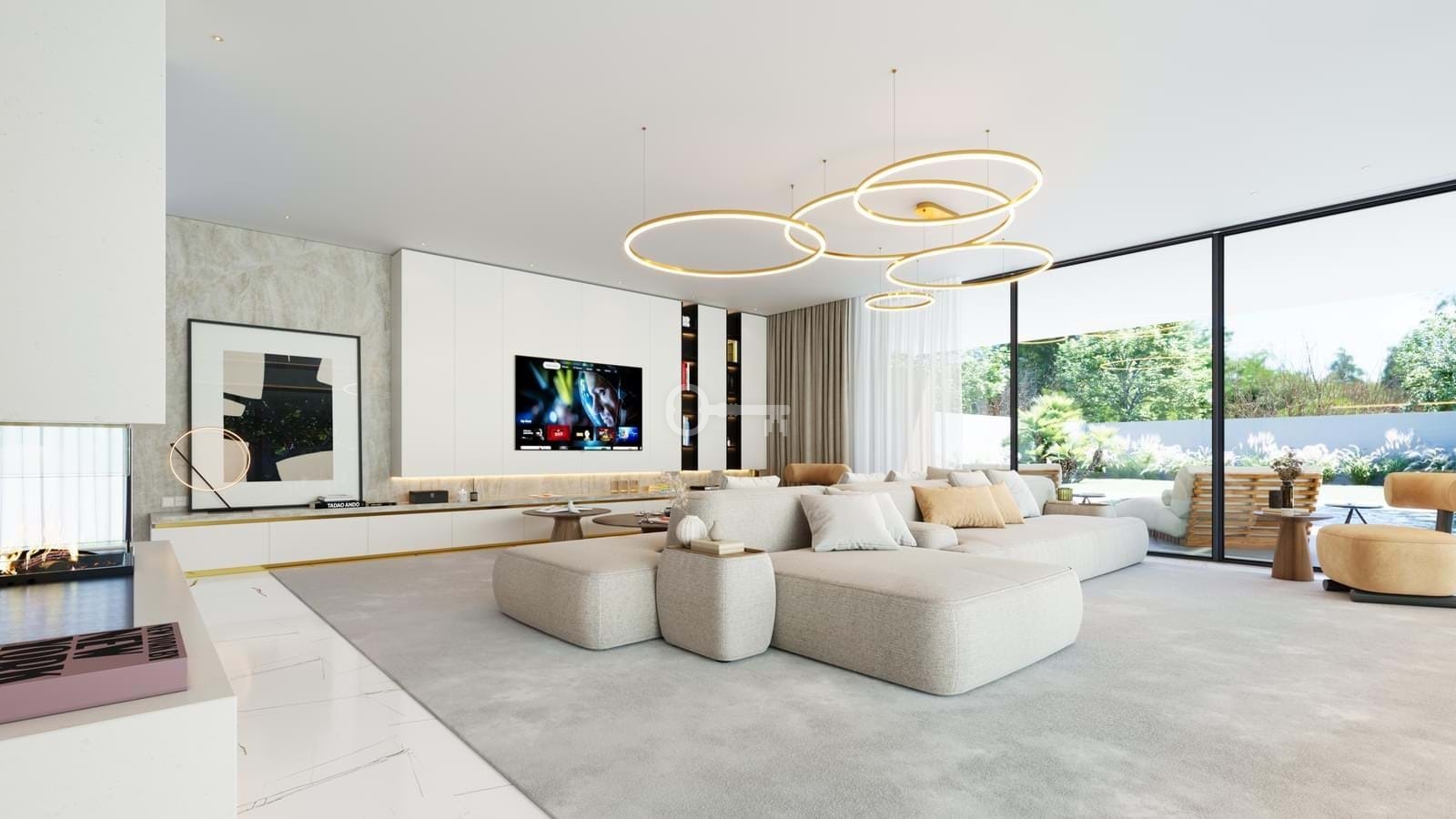 Designed with luxurious contemporary interiors and exteriors, this residence spans three floors plus a rooftop terrace, set on a 585 m² plot.