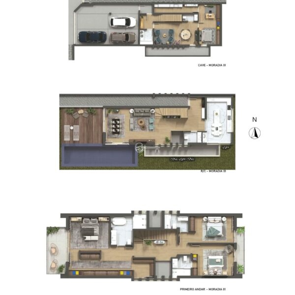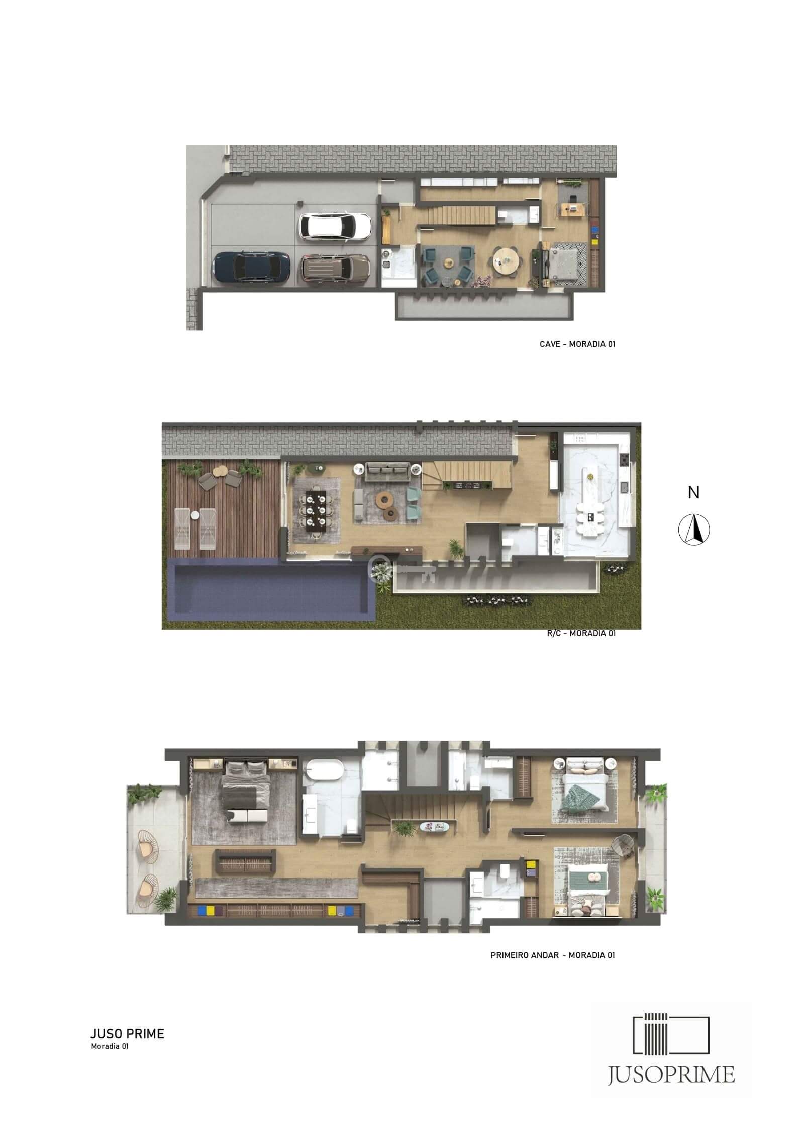 All the villas comprise ground floor, first floor and a lower floor (the latter also with plenty of natural light).