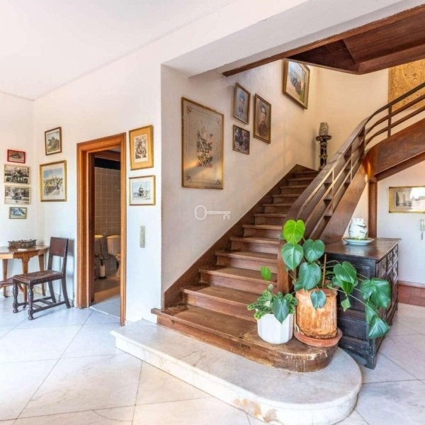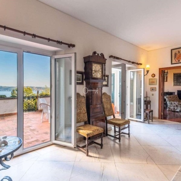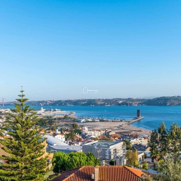 5 bedroom villa, of classical style, located in Alto de Santa Catarina, with clear views to the river and to the 25th of April bridge. The villa, with more than 560 sqm of constructed area, is inserted in a 1074 sqm plot of land, being distributed by 3 floors: basement, ground floor and first floor. In the basement there are two separated garages (totaling 62 sqm), both with automatic gate and each one with parking space for 2 cars. There are also several small rooms that include a maid’s room, a bathroom and storage areas. On the ground floor there is a large entry hall with an immediate view to the river, direct access to the terrace and an impressive wooden staircase. This floor comprises the living room, with 43 sqm, with wooden beams in the ceiling, which is quite high, a stone fireplace and an ample window with an unobstructed view to the river, a formal dining room with 20 sqm, a refurbished kitchen with 15 sqm, supported by a pantry and a service area / scullery with approximately 14 sqm. In the private area there are 2 bedrooms that are supported by a bathroom. One of the bedrooms and the living room have direct access to a terrace facing south that provides a river view. This terrace has direct access to the garden through a staircase. On the first floor there are 3 bedrooms, all of them with river view, with the following areas: 15,5 sqm, 21 sqm and 32 sqm, having the latter direct access to another large terrace with 23 sqm. These bedrooms are supported by a bathroom and there are also 2 small storage areas. The garden, with plenty of space to construct a swimming pool, guarantees plenty of privacy and can be accessed by the sides of the villa, as well as by the basement and also by the ground floor. Characterized by its mild climate, Oeiras is one of the most developed municipalities of the country, being in a privileged location, only a few minutes away from Lisbon and Cascais and with superb views over the river and the sea. The restored buildings, full of charm, cohabit in perfect balance with the new constructions. The seafront promenade gives access to the fantastic beaches along the line. Alto de Santa Catarina is one of the most sought-after areas in Oeiras for its wide river views, the proximity to Lisbon and also for being a quiet residential area with villas and some apartments.