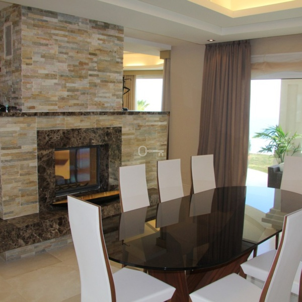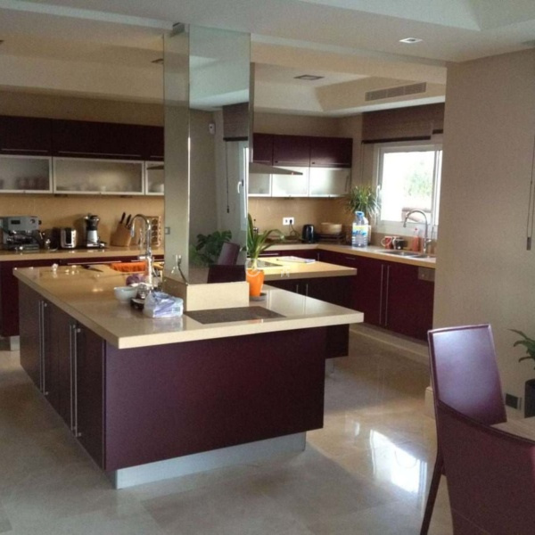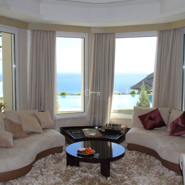 Villa consists of 3 floors, where there are 5 bedrooms & 5 bathrooms, 2 guest toilets. Spacious terraces with panoramic views. There is an elevator that connects all levels. From the front hall you get into a spacious bright living room with a fireplace, there is also a fully equipped kitchen with a dining area, from the living room you get straight to the main terrace.