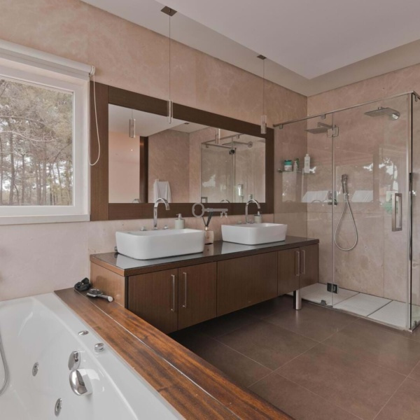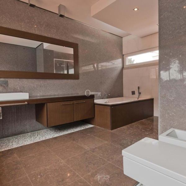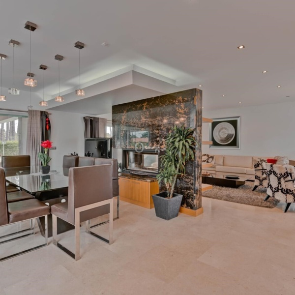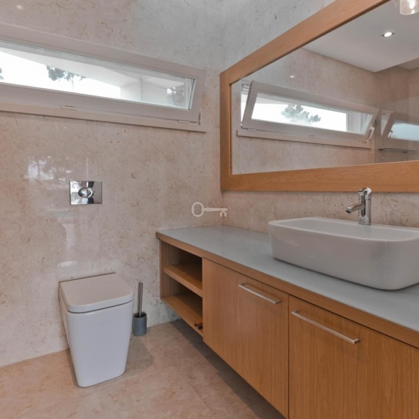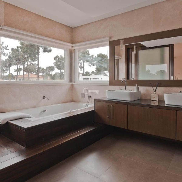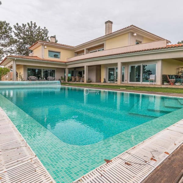 4 bedroom villa, with a clear view to the Golf of Herdade da Aroeira. It is inserted in a 1709 sqm plot of land, with swimming pool, a lounge area and an ample lawn garden area.