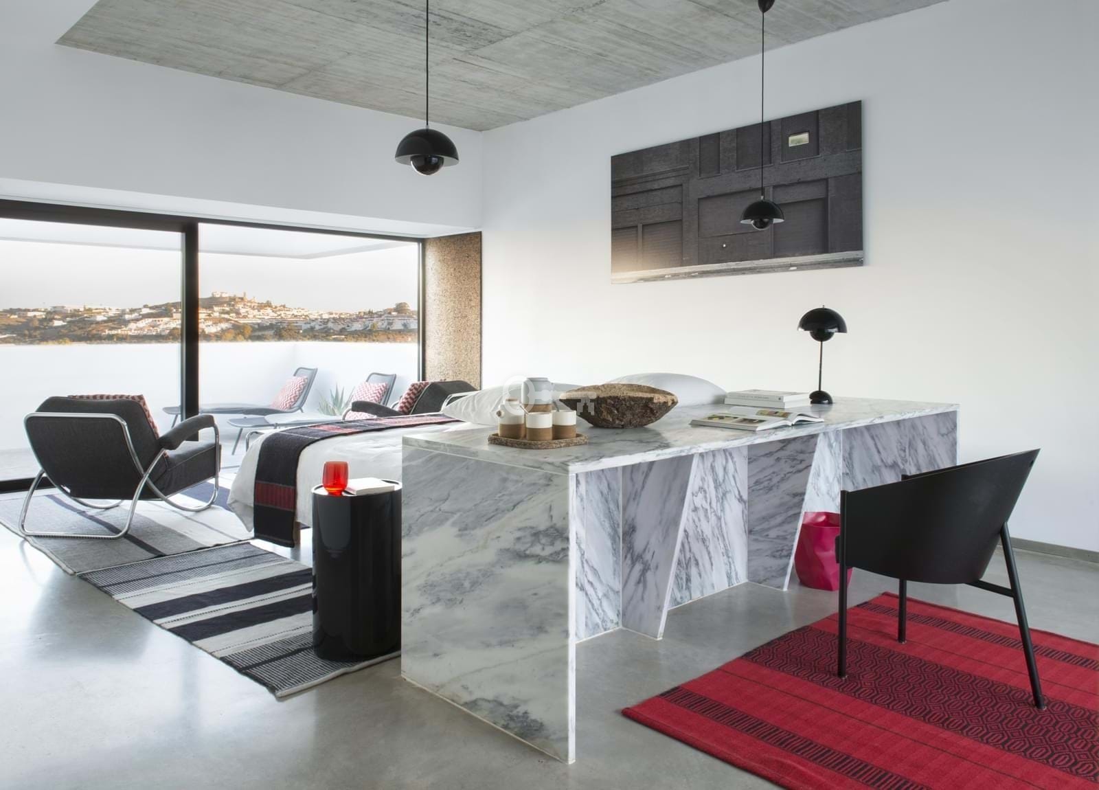 Designed with inspiration from Roman structures, convent architecture, and typical southern Portuguese villages, the villa showcases regional materials like whitewashed walls, Estremoz marble, and cork, honoring Alentejos traditional building identity.