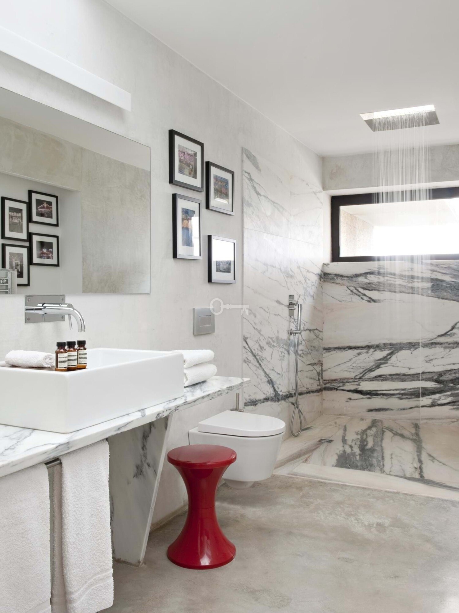 Bathroom with Estremoz marble walk-in shower
