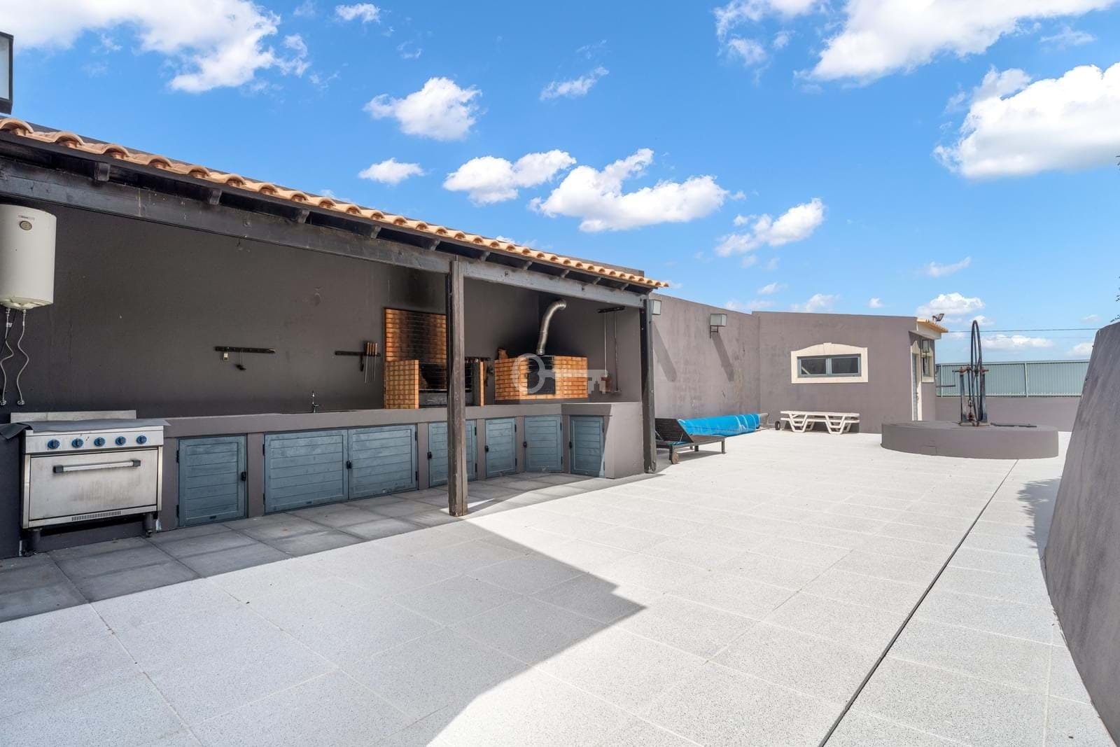 Outside, in addition to the pool, there is a leisure area with changing rooms, a garden with a barbecue, wood-fired oven, industrial gas stove, and automatic lighting. The windmill, while functional, requires minor repairs. The property also includes a borehole and a well, an irrigation system, and parking space for over 10 vehicles.