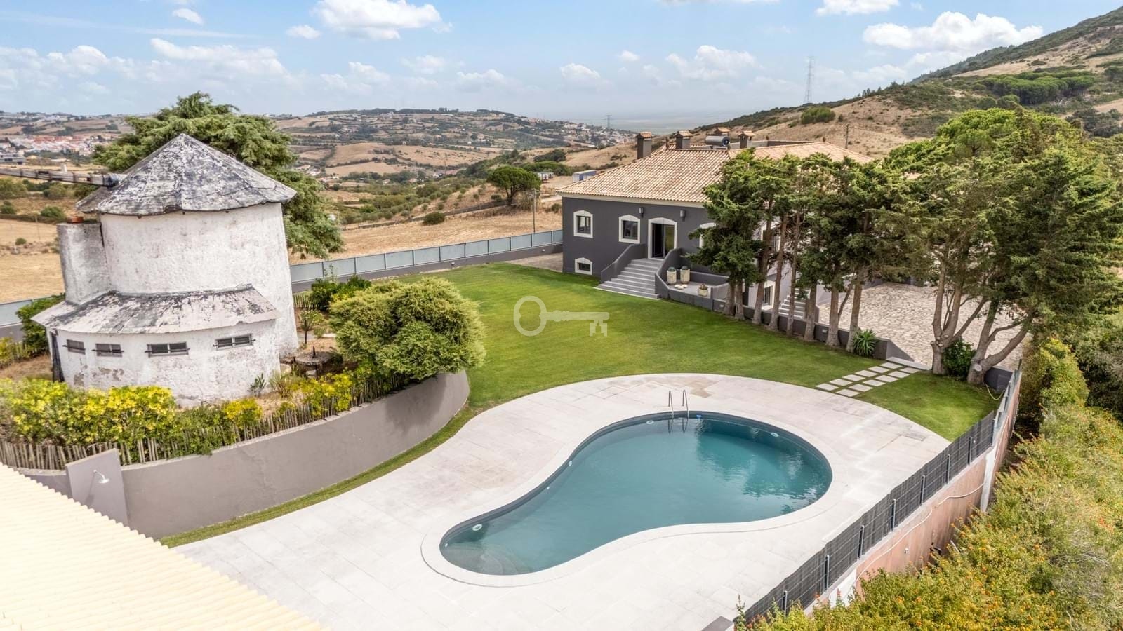 This property stands out for its main two-story residence with unobstructed countryside views. Outside, it features an annex that can be used as an office, gym, or guest house, a saltwater swimming pool with a heating system, and an old windmill all set on a 2,440 m² plot of land.