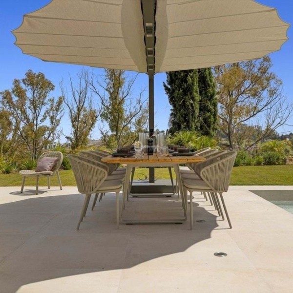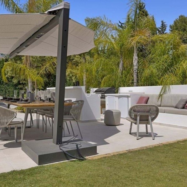 Outdoor living is equally impressive, with a large 10m x 5m private swimming pool, spacious terraces, and an outdoor kitchen complete with bar, fridges and a gas barbecue. The carefully selected design includes top of the range garden furniture and an innovative sunshade with lighting, heating and misting system, creating the perfect environment for entertaining or relaxation.