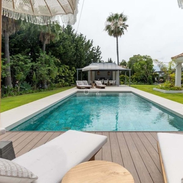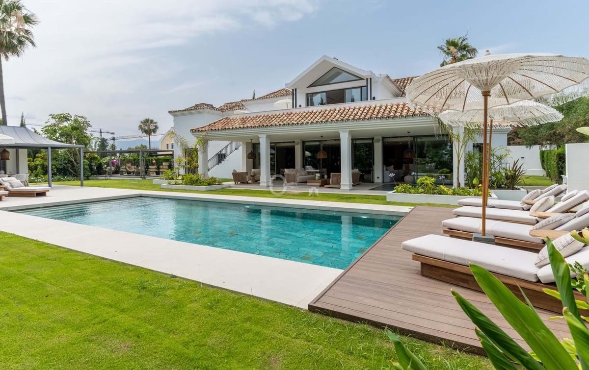 This Villa is a captivating Mediterranean residence ideally situated in the sought-after enclave of Atalaya, just 400 metres from the prestigious Atalaya Golf Club. Drawing inspiration from classic Andalusian architecture while embracing contemporary elegance, this home is a harmonious blend of style and comfort. The villa is set within beautifully landscaped grounds that envelop the property, creating a private oasis of calm. Mature trees and vibrant greenery enhance seclusion, while a sparkling private pool offers the perfect spot to relax under the Spanish sun. Generous outdoor areas make it ideal for entertaining in style.