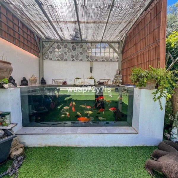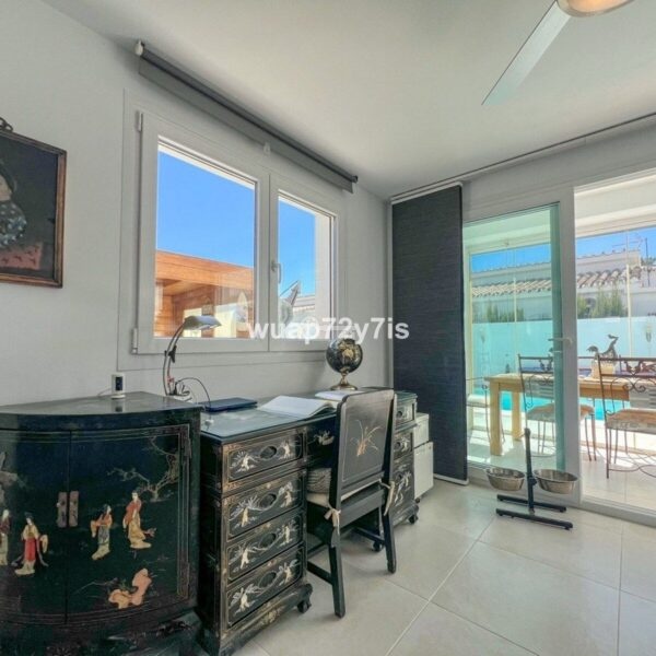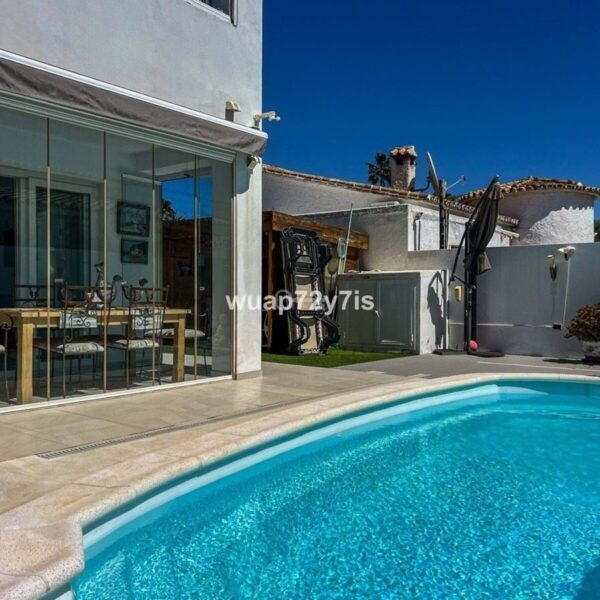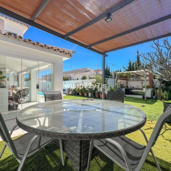 The villa features a landscaped garden and a private swimming pool, creating a peaceful oasis to enjoy the Costa del Sols sunny climate.