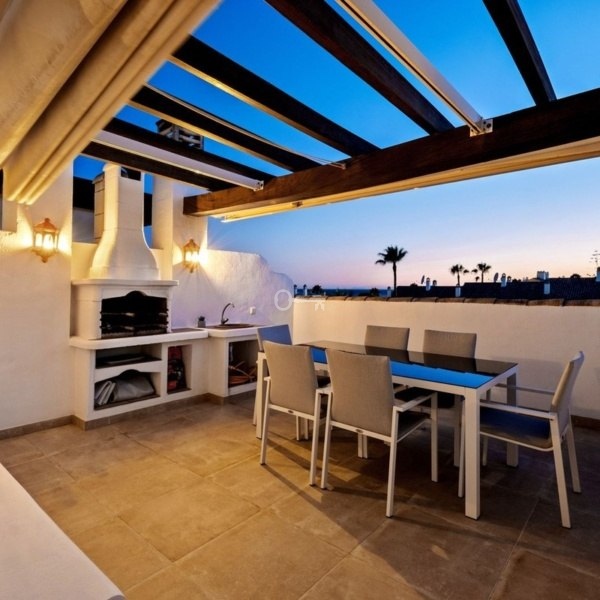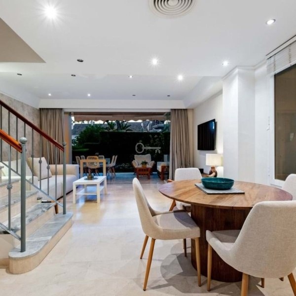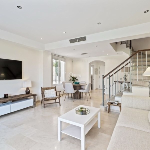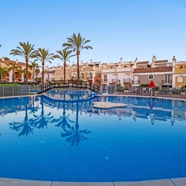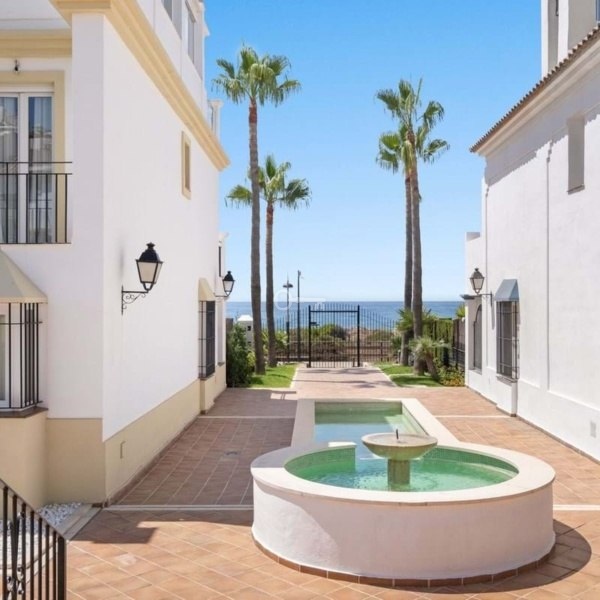 Welcome to this exceptional townhouse located in the prestigious Las Dunas development, one of the most sought-after beachfront communities on the Costa del Sol. The entire development sits first line to the sea, offering direct access to the beach, beautifully landscaped gardens, and an atmosphere of exclusivity. Residents enjoy outstanding amenities, including impressive swimming pools, lush communal areas, concierge service, and 24-hour security.