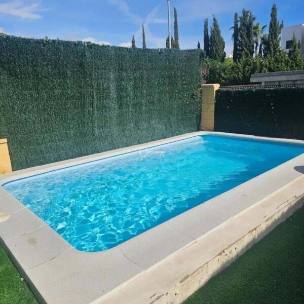 The property is on two floors and offers 3 spacious bedrooms and 3 full bathrooms, one of which is en suite. The living room is bright and spacious, with direct access to the private garden, ideal for enjoying the Mediterranean climate all year round.