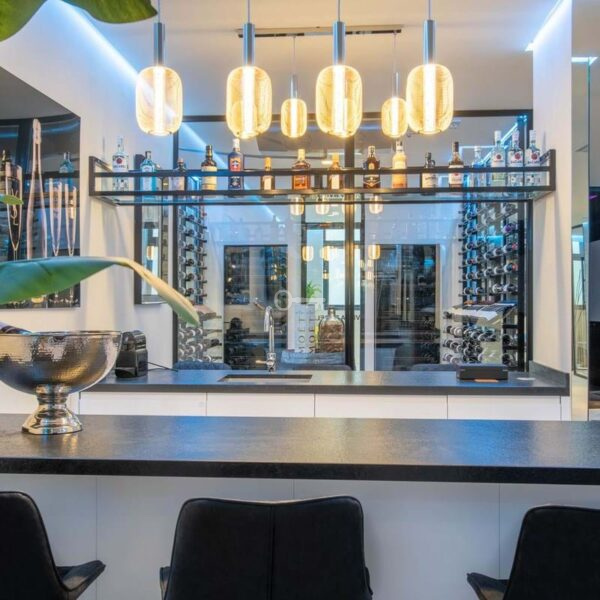 This exclusive masterpiece, a designer villa by Carlos Lamas, houses a total of 5 bedrooms and 6 bathrooms, all of which have been completely designed with high-quality materials and equipped with the latest technologies.