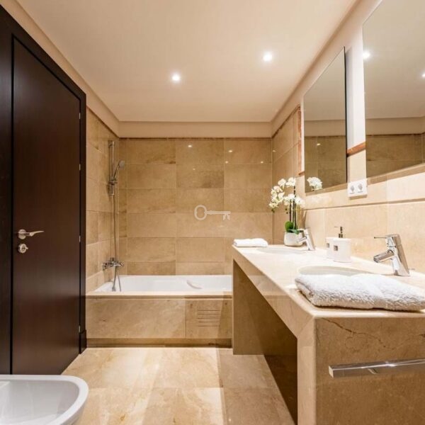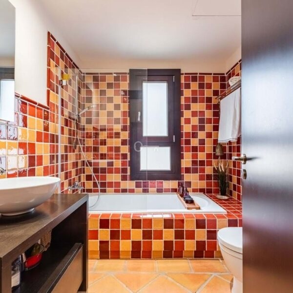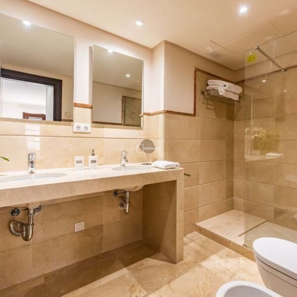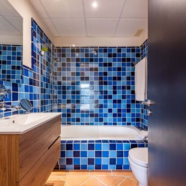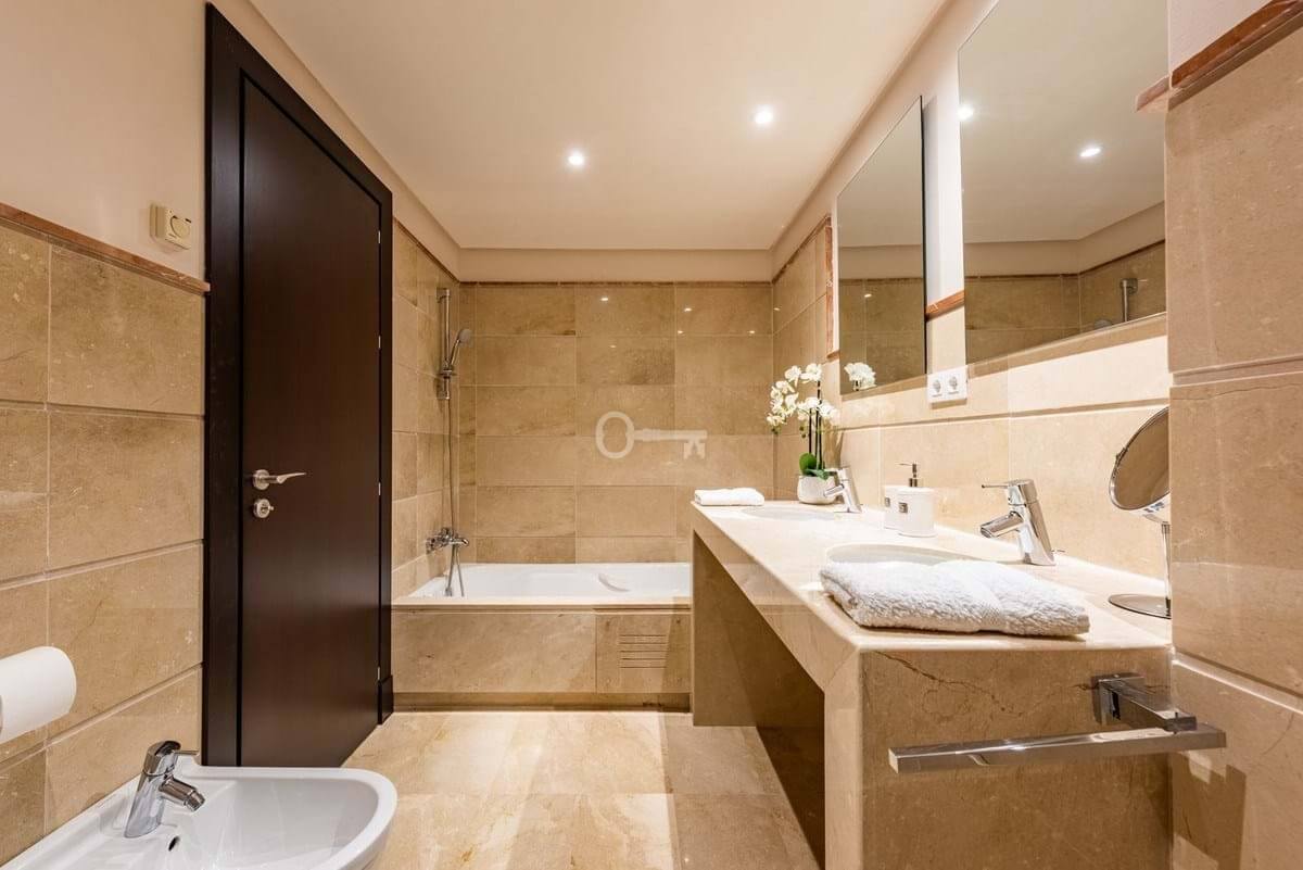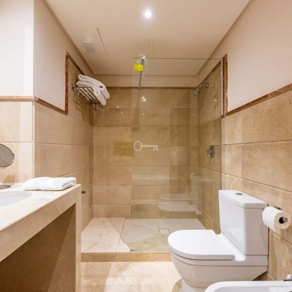 Descending from the entrance level, you will find a full bathroom that serves both as a guest bathroom and as the bathroom for the fourth bedroom, which is located in a more private area of the homeideal for guests seeking additional independence.