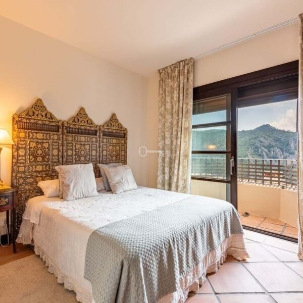 The living room, featuring double-height ceilings, offers a wonderful sense of space and natural light. It also connects visually with a cosy upper-level sitting area, complete with a fireplace, ideal for relaxing during the cooler months. The living room also provides direct access to the terrace, creating a seamless connection between indoor and outdoor living.