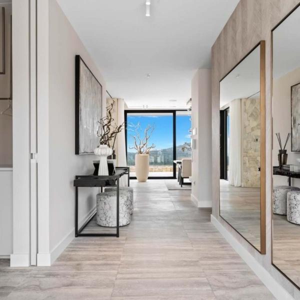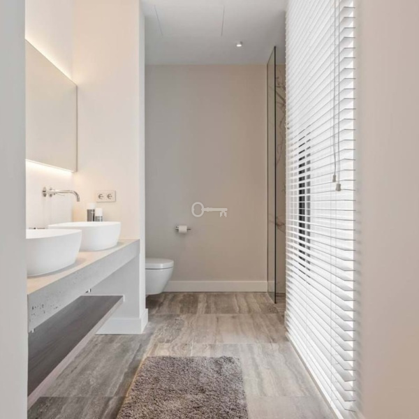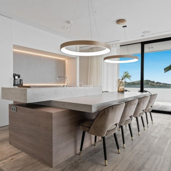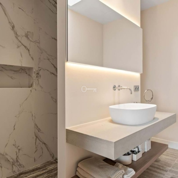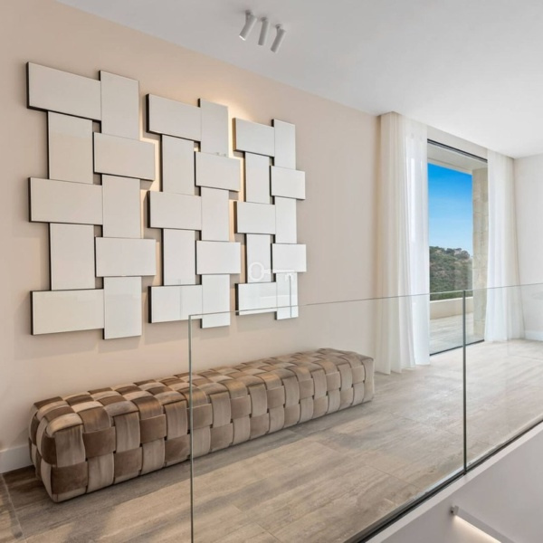 On the first floor you will find a high-end kitchen that flows into the spacious dining area and living room. These spaces also flow seamlessly to the open terraces and heated pool. From the outdoor sitting area with fire pit, you can enjoy the Mediterranean climate and beautiful mountain and sea views all year round. In addition, on the first floor there are 2 bedrooms with en-suite bathrooms.