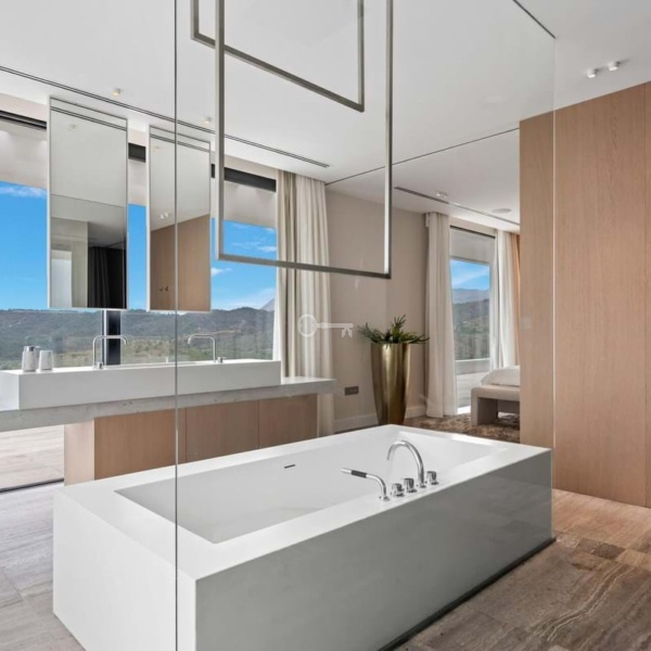 This unique villa is part of the gated community Monte Mayor in Benahavís. Surrounded by nature, here you can enjoy tranquility and breathtaking views, while being only 15 minutes from the beach.